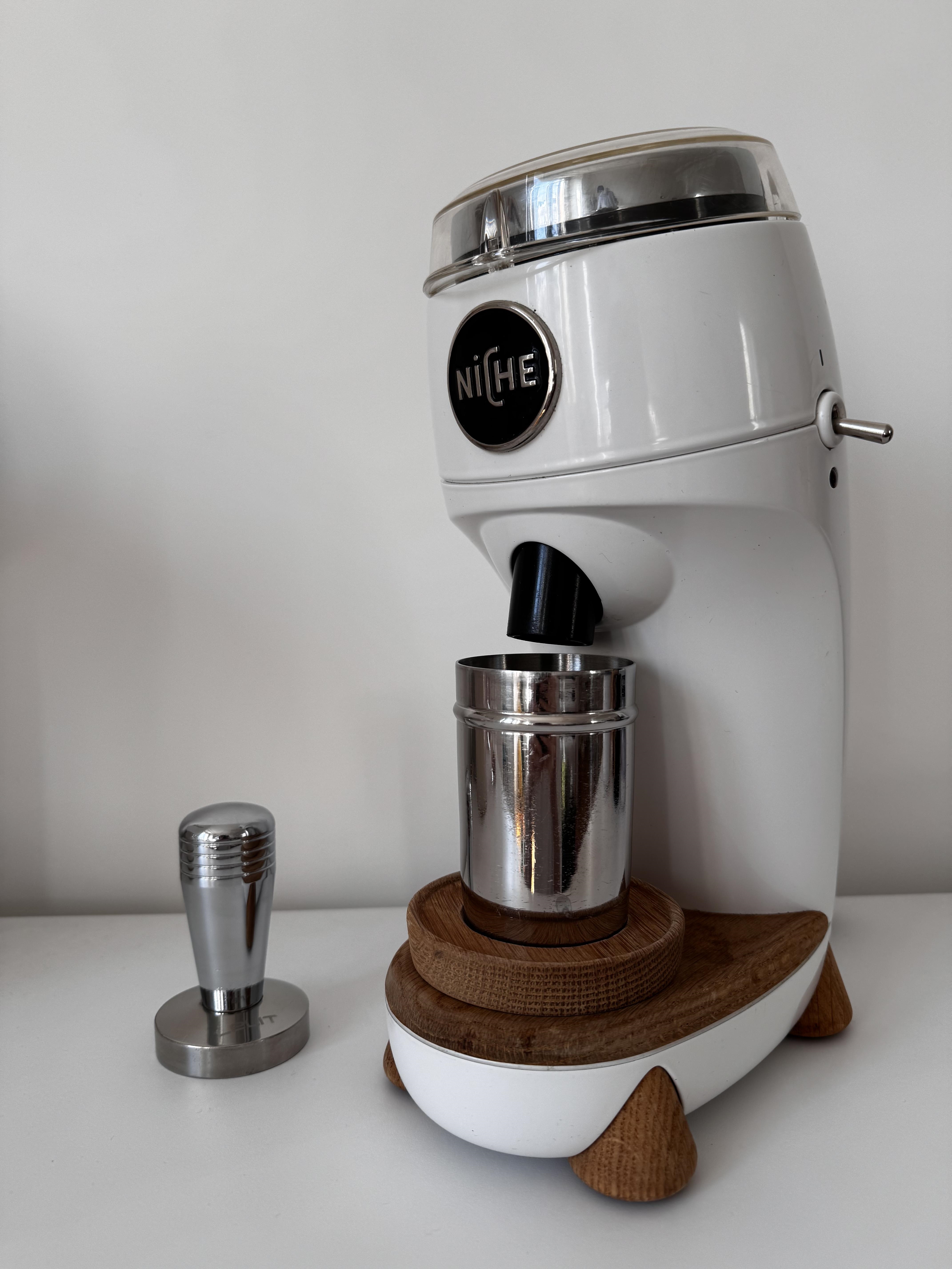Je vends mon moulin Niche Zero en blanc, avec une cup de 58mm. Prise EU. Il est en état nickel, acheté durant la campagne Indiegogo de 2020, il a dû moudre 3 cafés par jour pendant 6 ans. Je passe à un système semi-auto avec moulin intégré (c'est ça de vieillir