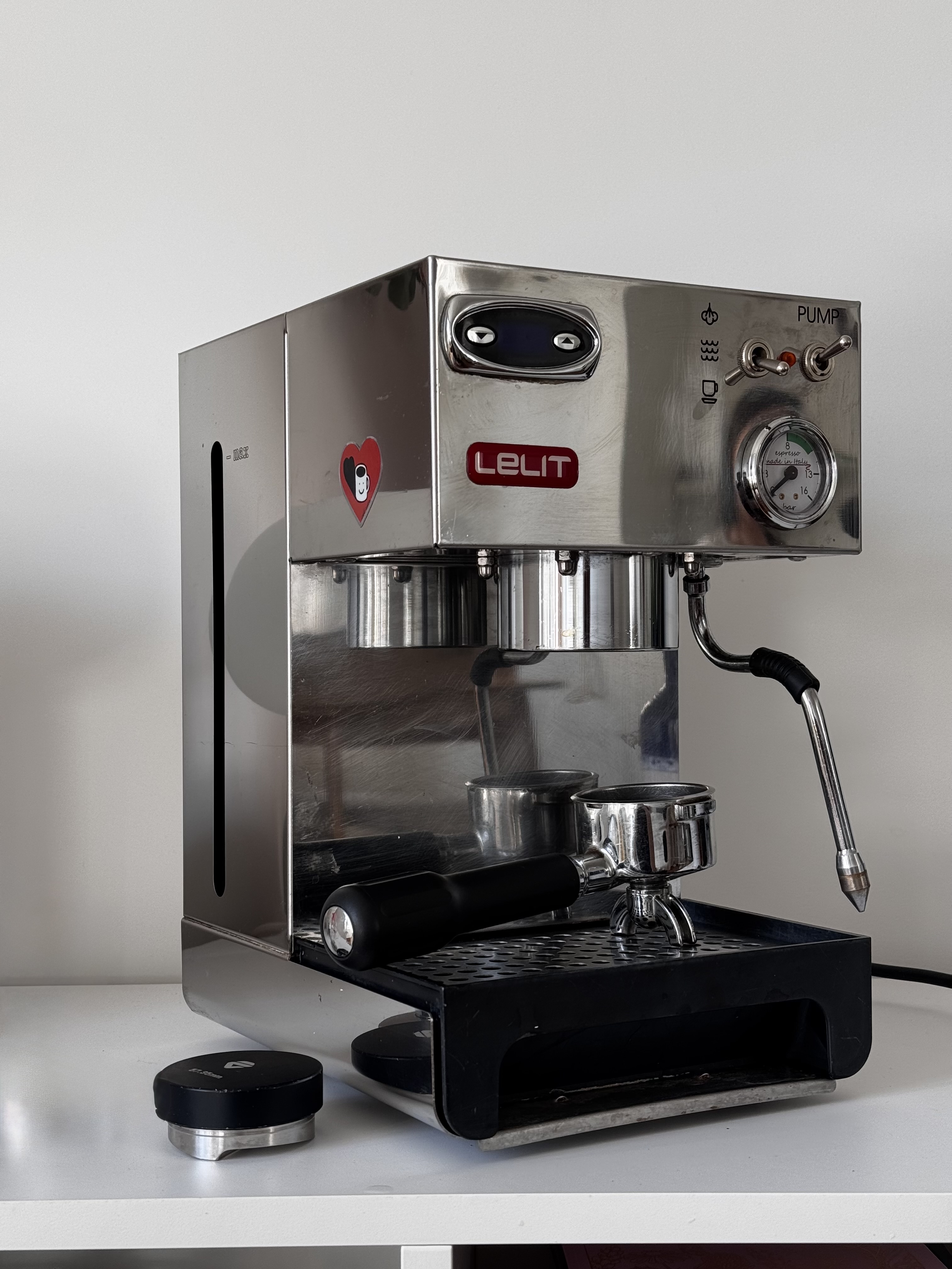 Je mets aussi un tamper Lelit de qualité exceptionnelle, full métal, bien lourd.