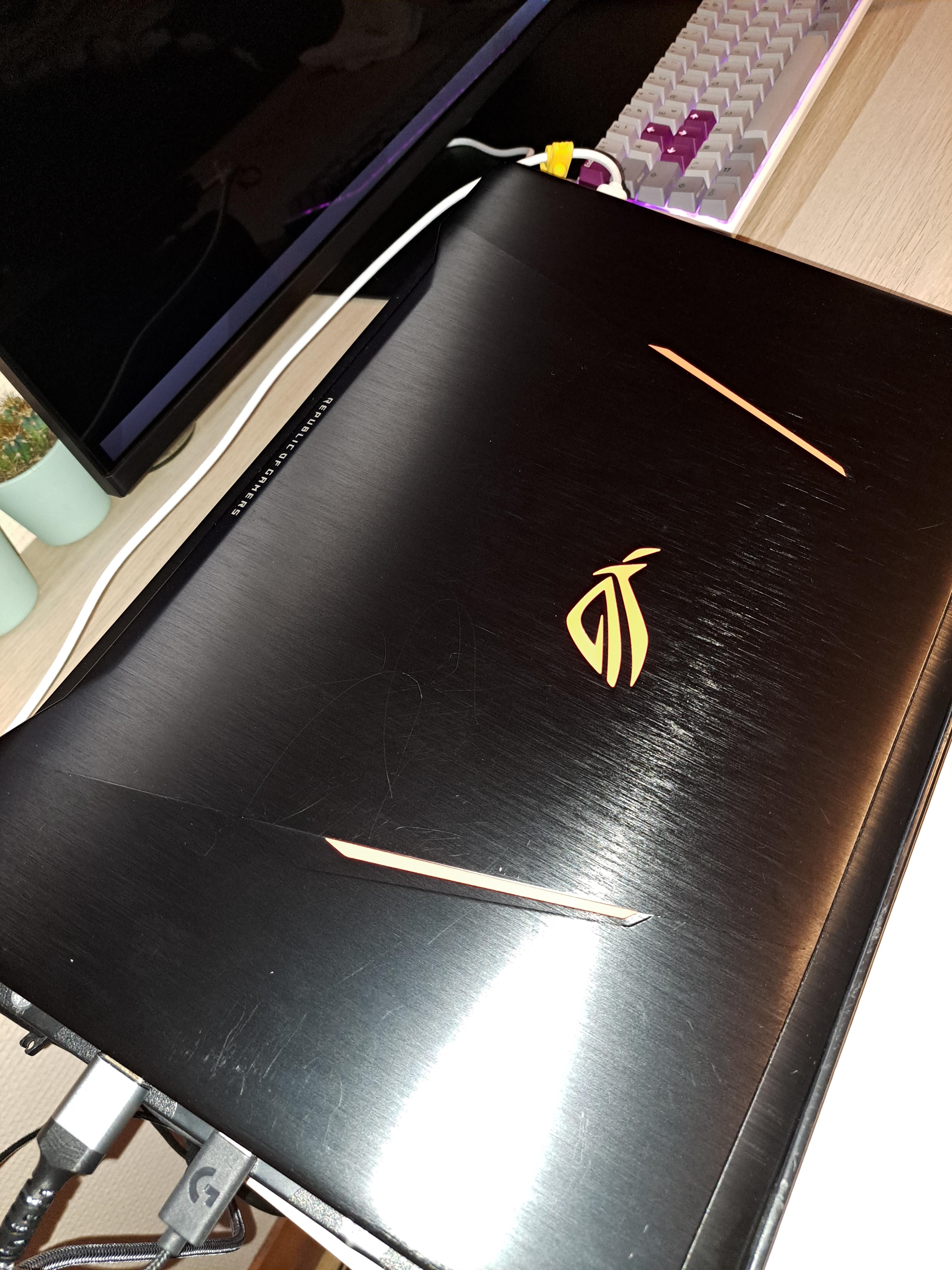 Quelques micro rayures sur le top alu, sur l'écran c'est difficile de les prendres en photo mais il y en à quelques unes qui ne gêne en rien l'utilisation elle sont visibles uniquement avec un gros flash bien proche de l'écran, les touches du clavier apparaissent aussi mais c'est compliqué d'expliquer et de les prendres en photos ce n'est pas visible en utilisation.