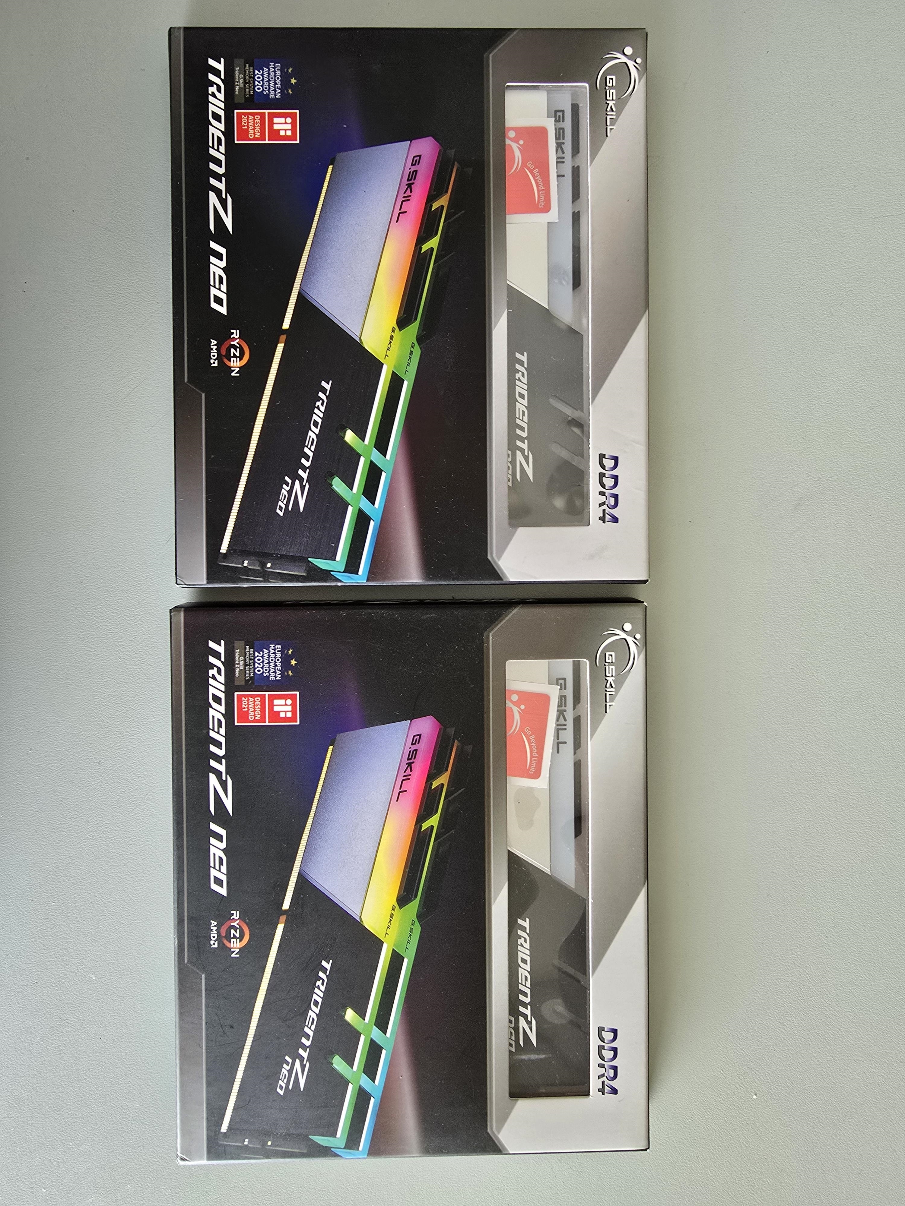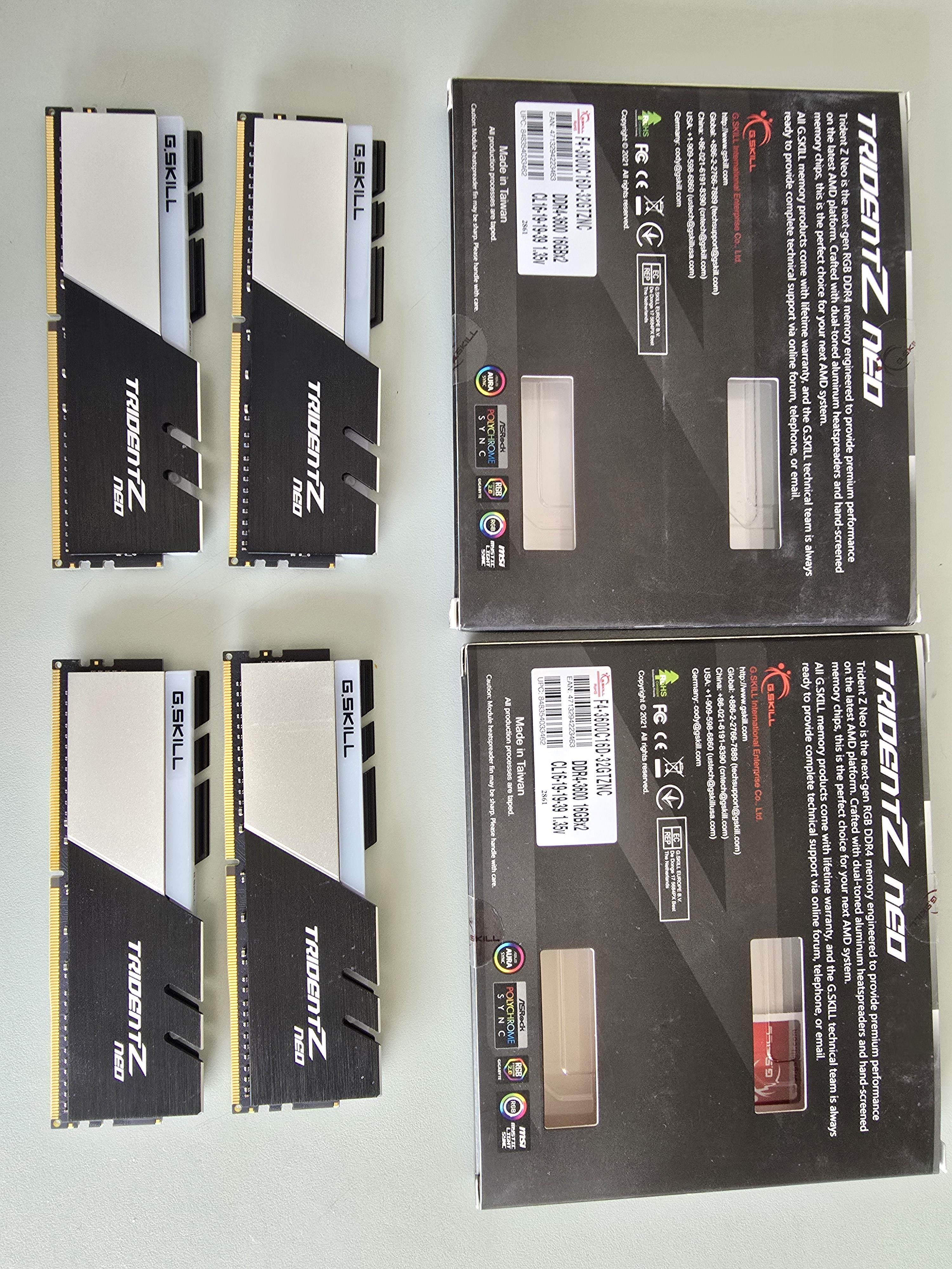 Ram G.Skill 64GB 3600 CL16-19-19-39 1,35V, en 4 barrettes de 16GB(2 boites 2x32GB ref F4-3600C16D-32GTZNC pour être plus précis)