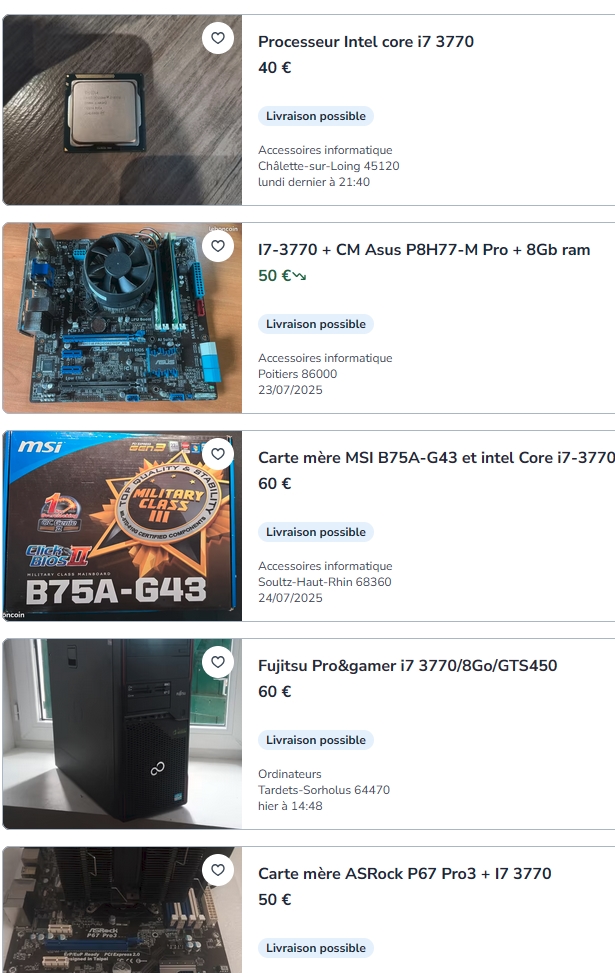 johnclaude You know nothing johnclaudeTransactions (20) | Salut. Vous pensez que ça se vend combien un core i7 3770?