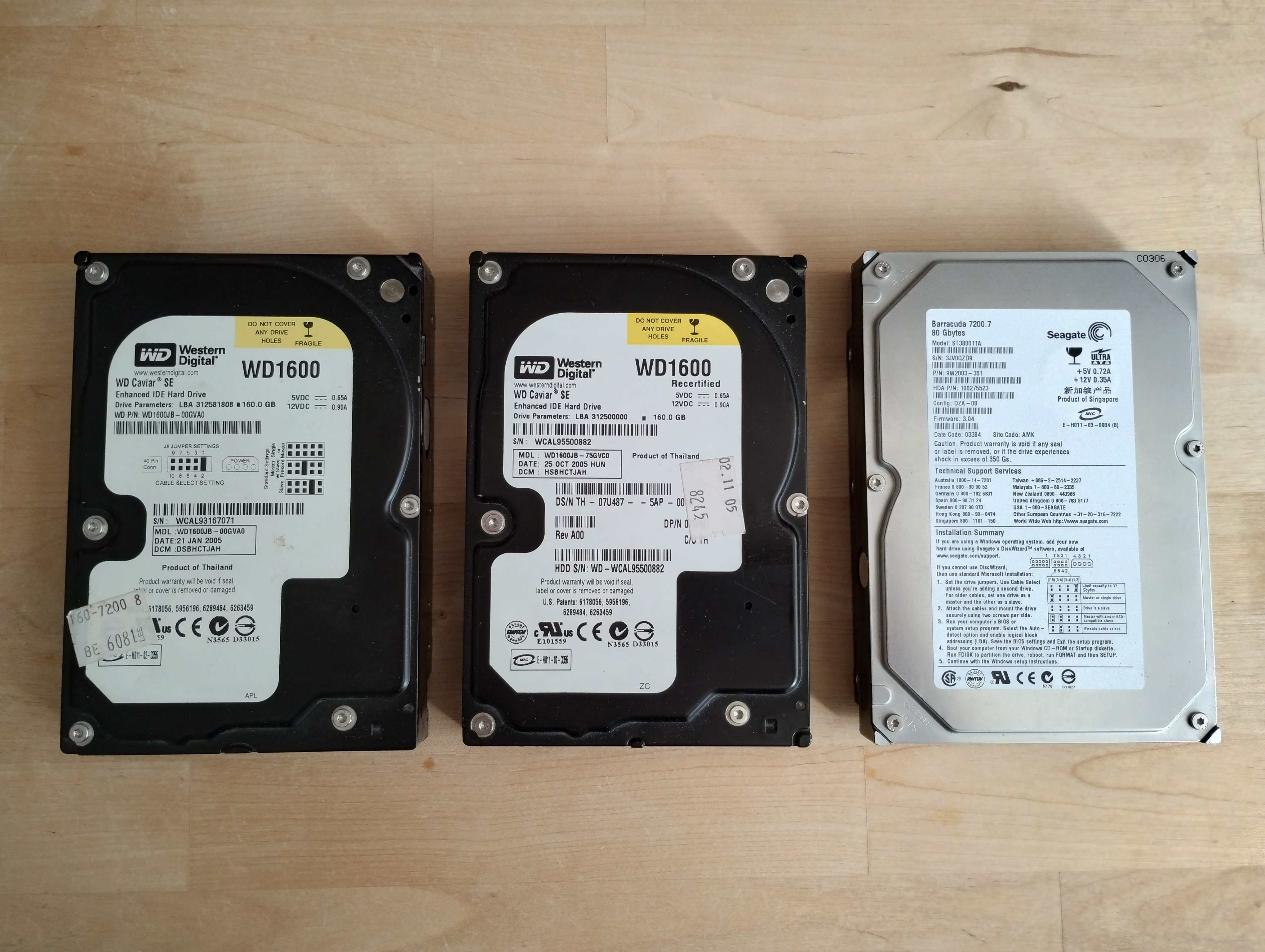 - Deux WD Caviar SE IDE Black 160go, fonctionnaient il y a deux mois en RAID 0 sur une vieille config (pas de CrystalDisk par contre)