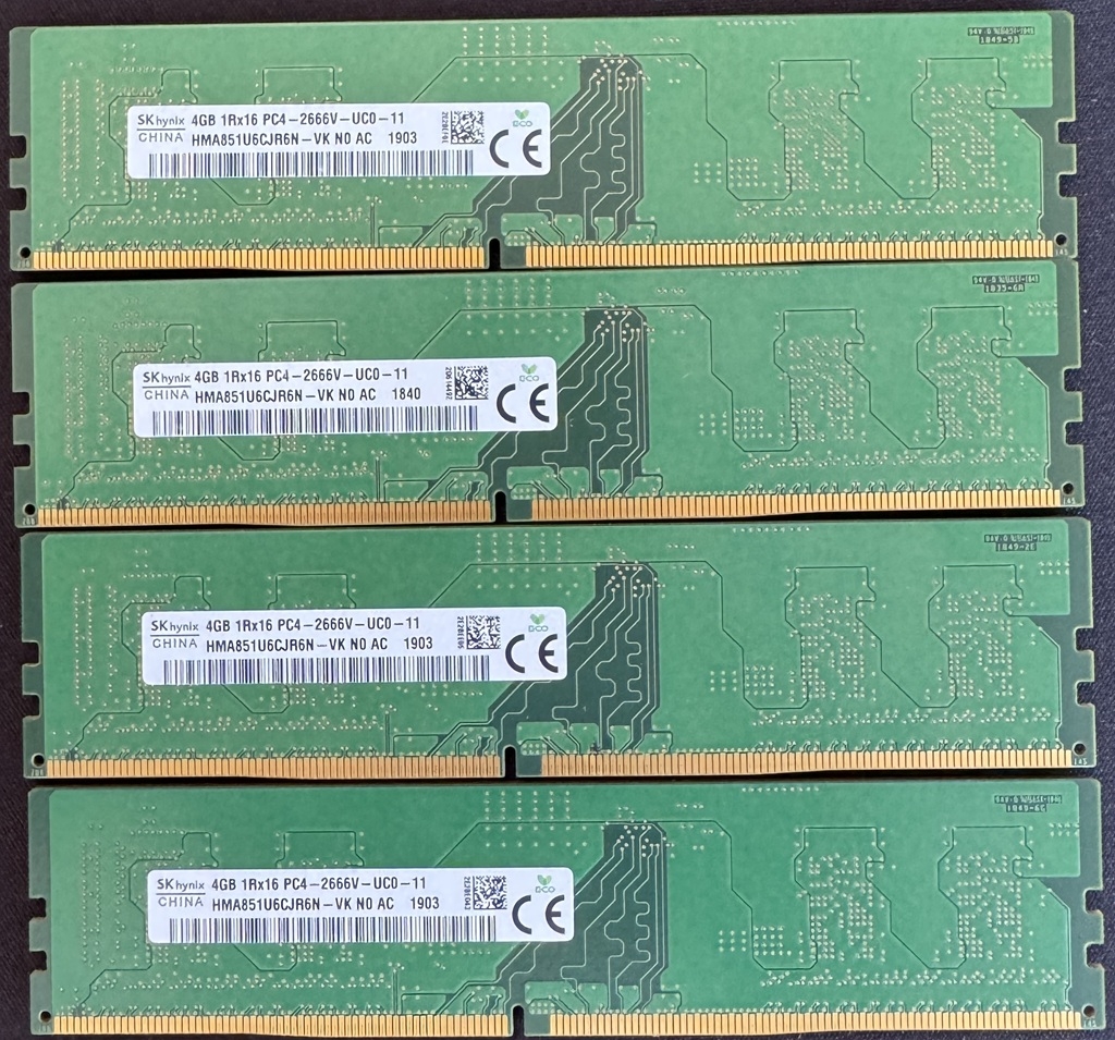 -16Go (4x4Go) DDR4 NON ECC 2666MHz SK Hynix 1Rx16 PC4-2666V-UC0-11 : 40€