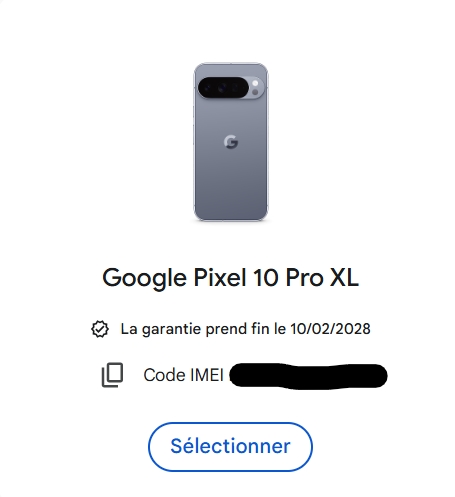 Je vends mon Google Pixel 10 Pro XL Gris 256Go, acheté neuf sous scellé sur leboncoin, Facture SOSH achat nu du 27/12/2025.
