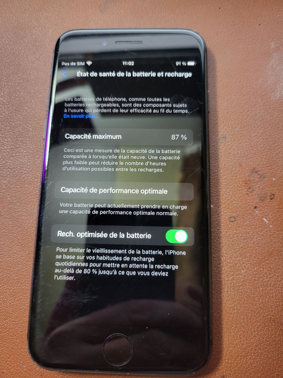 Batterie a 87% donc en bonne santé.