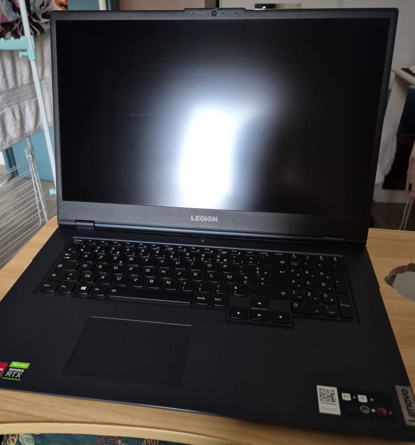Il a subit la maladie des lenovos legion : petite usure de la peinture au niveau du repose poignet gauche, et marque invisibles pc allumé au niveau de l'écran quand on le referme.