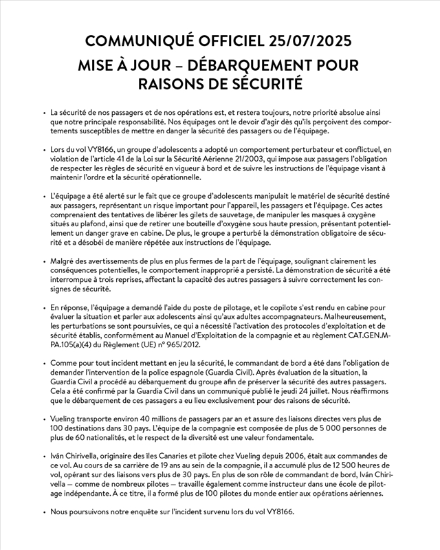 fazero Salut c'est Ralph | On va peut être attendre l'enquête mais dans l'intervalle je mets plutôt une pièce sur la version de vueling + la guardia civile. Message cité 1 fois Message édité par fazero le 26-07-2025 à 09:00:13 --------------- Agent immobilier sur Paris 16 |