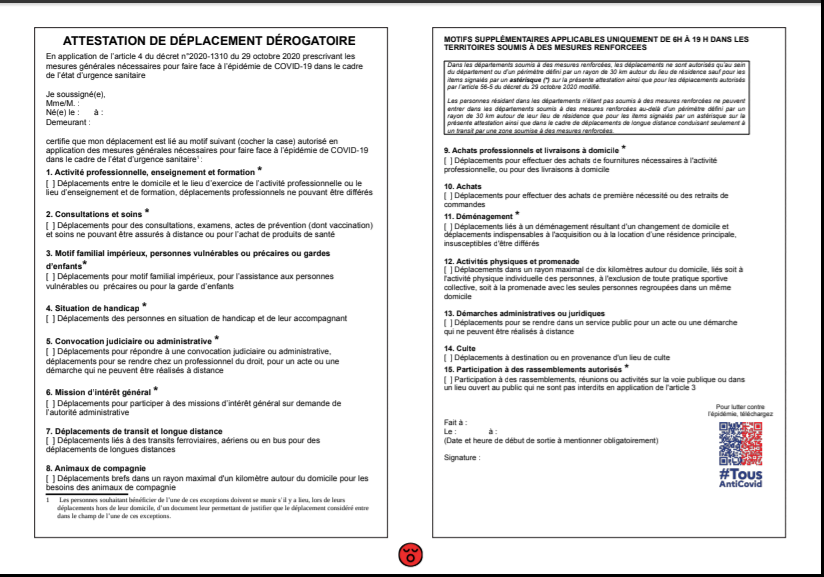 Juliano66 | Apparement plus d'attestation en journée, le justificatif de domicile suffit quelque soit le motif de sortie si j'en crois BFM ?