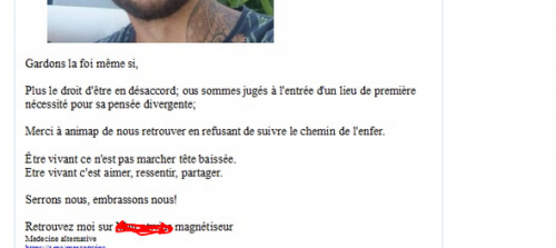 C'est insupportable toute cette débilité, je n'en peux plus...et on nous demande d'etre charitable avec eux, de montrer l'exemple, qu'il ne faut pas les juger durement, que ce sont justes des pauvres gens qui ont peur et qu'il faut rassurer, il faut être bienveillant. plus ça va et plus cette maxime me semble d'actualité "La tolérance atteindra un tel niveau que les personnes intelligentes seront interdites de toute réflexion pour ne pas offenser les imbéciles " (Dostoïevski me dit internet) démonstration par l'exemple avec Alexander Samuel, qui fait du debunk sur tout ce qui se dit sur les RS concernant la pandémie, qu'on a vu récemment tenter de dialoguer avec Henrion Caude lors d'une manif, qui s'est fait péter la gueule il y a quelques jours et menacer par des manifestants alors qu'il filmait simplement des tracts antivax lors d'une autre manif, et qui vient de se faire suspendre sur twitter, probablement massivement dénoncé par les défenseurs de la liberté d'opinion. Message cité 3 fois Message édité par Kiveu le 27-08-2021 à 11:34:23 --------------- “The modern conservative is engaged in one of man’s oldest exercises in moral philosophy; that is, the search for a superior moral justification for selfishness.” |