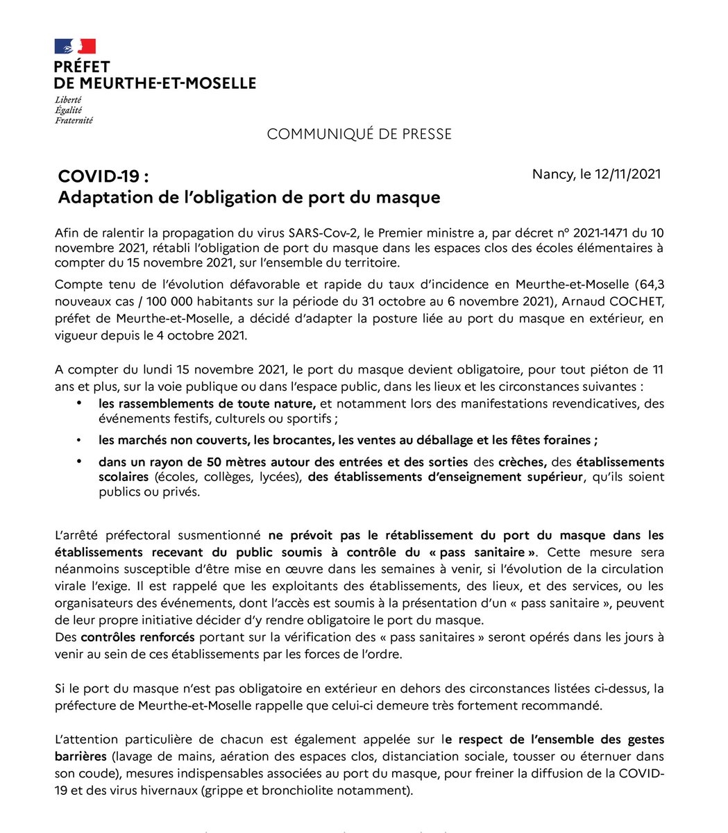 Htan | Idem dans le bas Rhin, mesures de la préfète avec obligation du port du masque dans les lieux clos soumis au pass