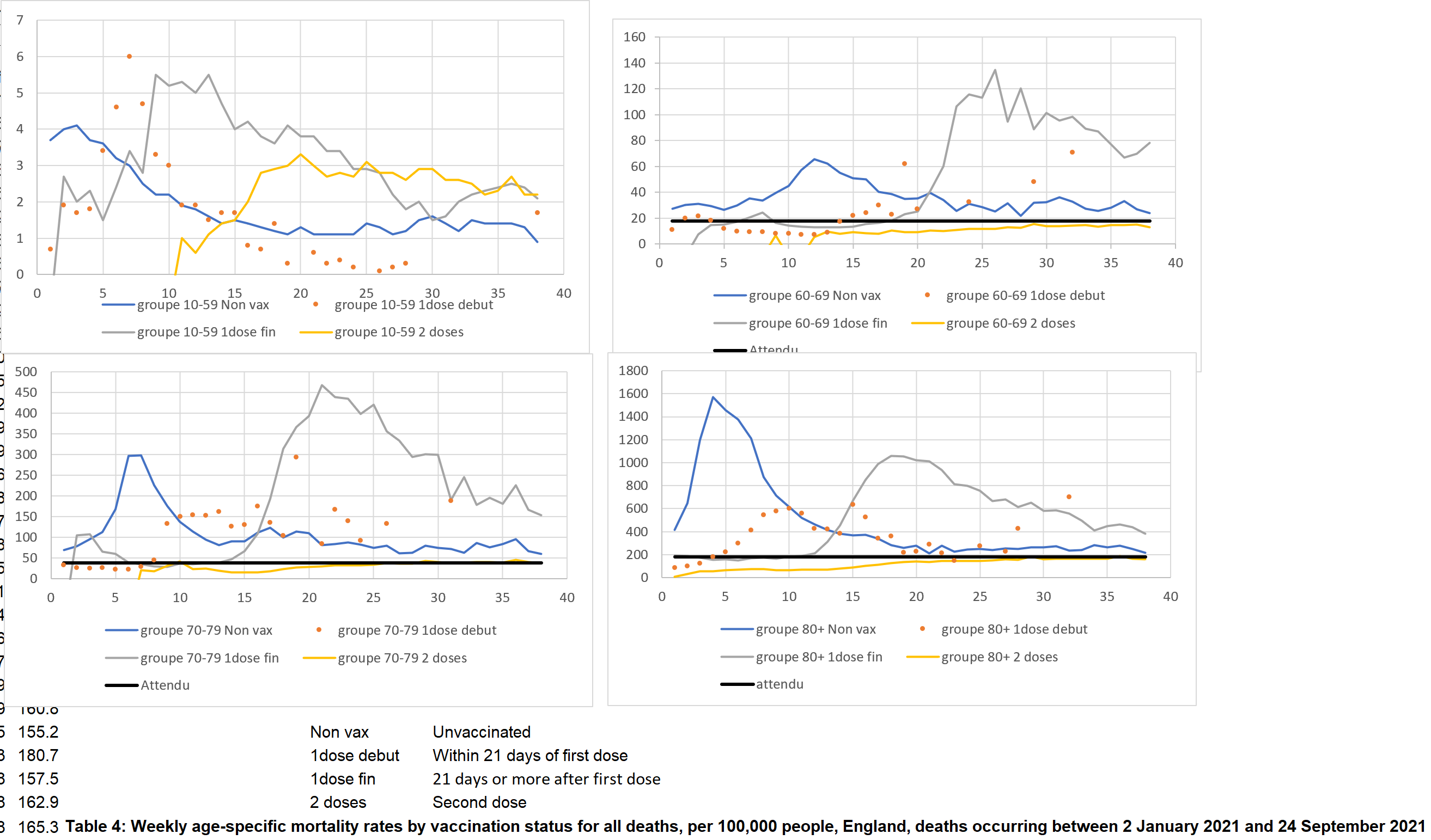Edit : une fois corrigé de l'âge, ça donne ça : Comme la mortalité chez les 12-59 vaccinés est à peine inférieure à celle des non vaccinés (une fois corrigé de l'âge) ça veut bien dire que le covid ne pose presque aucun problème de surmortalité chez ces tranches d'âge, contrairement aux 60+. Mais on le savait déjà... Message cité 1 fois Message édité par Laska- le 27-11-2021 à 01:15:13 |