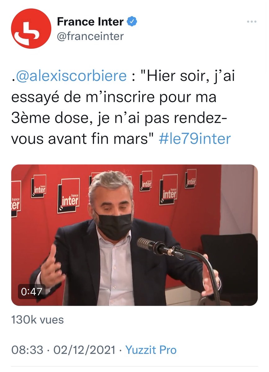 Avec LFI au pouvoir, tout le monde aurait en permanence 600.000 créneaux à disposition. Omicron démition! Message cité 1 fois Message édité par pascaldeuxzero le 04-12-2021 à 18:04:18 |