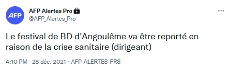 Tolor ModérateurMais heu... | 1er report du fait des mesures sanitaires. Le salon de la BD d'Angoulême
