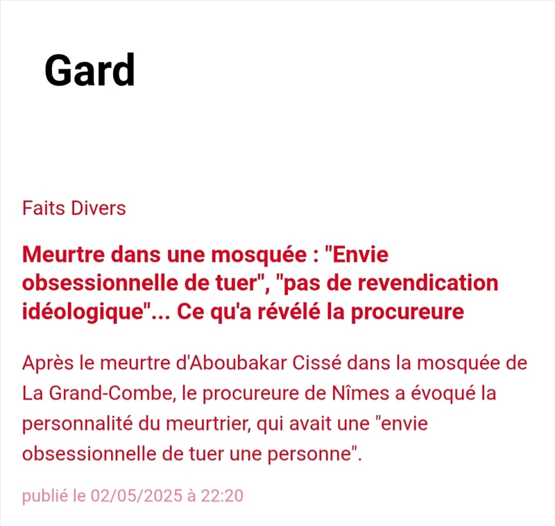 fatah | Meurtre dans une mosquée du Gard : l'agresseur a insulté Allah tout en filmant sa victime agonisante