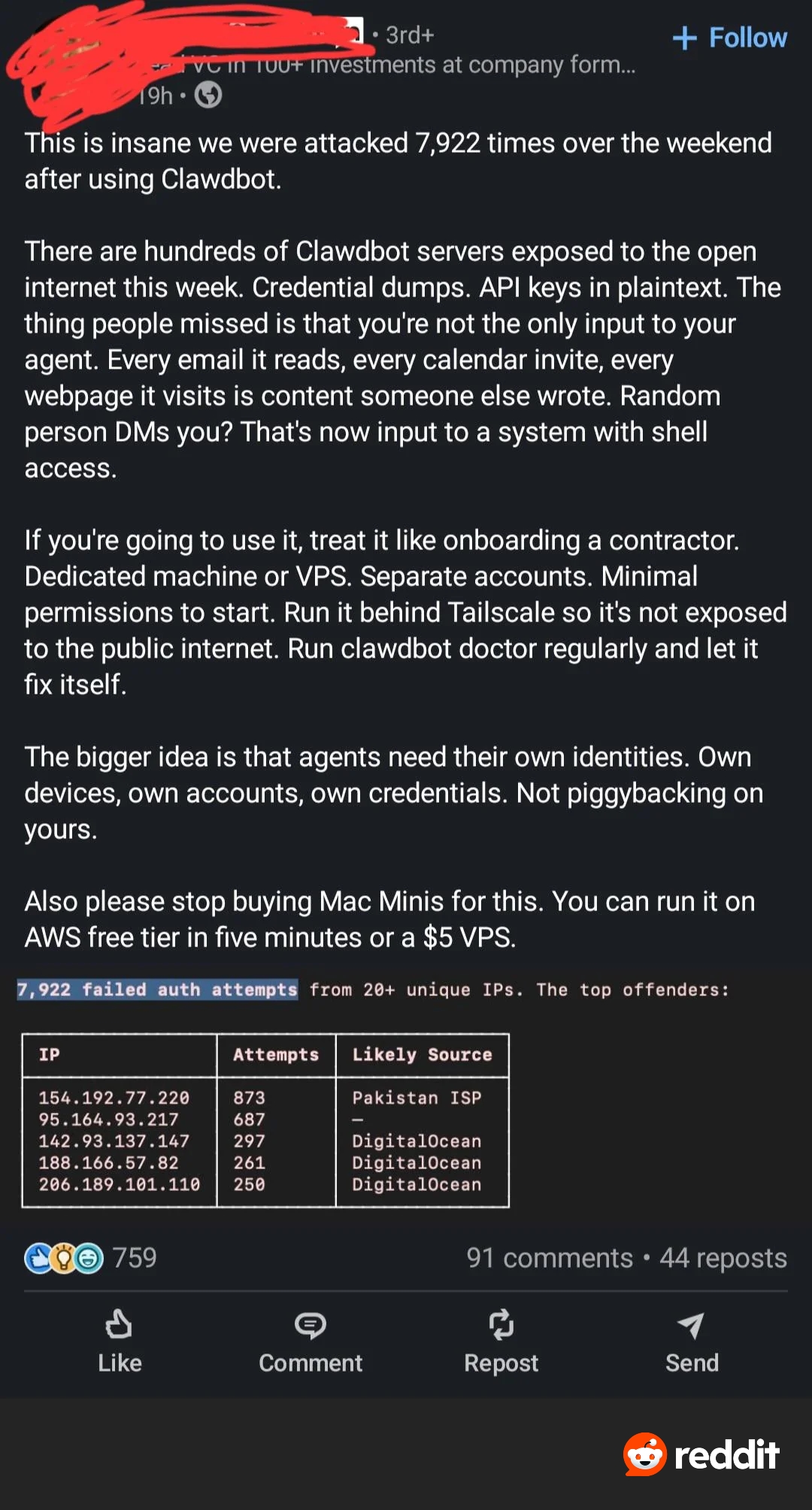 Un mec a tenté de débrancher clawdbot en enlevant les clefs d'API, ce con les a copié et il continue ses affaires comme si de rien était. Il envoyait des mails à la compagne du mec et faisait n'importe quoi avec la domotique de chez lui, en roue libre. Fais gaffe aussi, il est en full accès admin et pas assez protégé niveau sécurité. |
