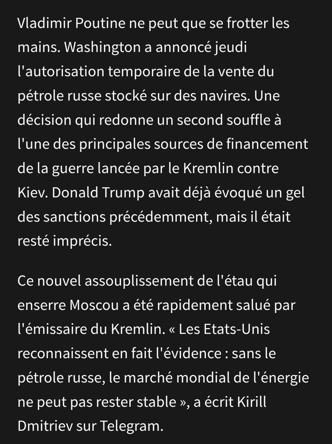 L'Iran tape sur tous ses voisins depuis le début. On envoie le CDG pour défendre 50km d'eau et le passage de pétrole. On devient donc un voisin et NON ? on se prend une attaque. Qui aurait pu prédire. Macron joue avec la vie de nos soldats pour sa petite guerre pour quoi ? du pétrole ? Super. Message cité 5 fois Message édité par sir mccitron le 13-03-2026 à 08:59:57 |