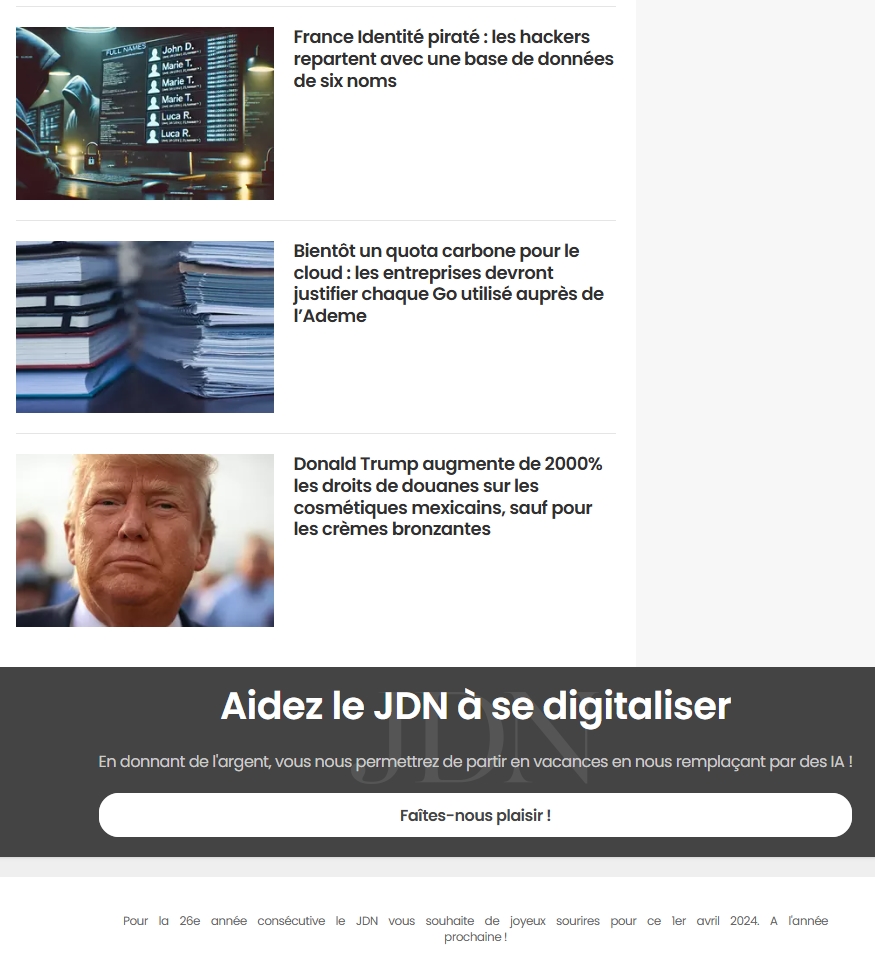 | Auteur | Sujet : 1 er avril, recensez les canulars dans les médias !! |
