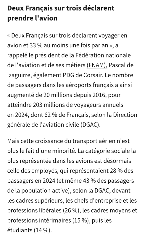 Polza Mancini | C'est pas l'info la plus encourageante de la journée, à part pour ceux dont l'activité rémunératrice consiste à cramer du kérosène (ce qui est bon pour le pib). |