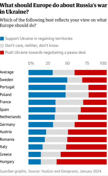 Ils n'ont toujours pas compris dans leur pays des Bisounours que tout ne se règle pas avec des bonbons et des câlins. Surtout quand c'est un mec comme Poutine en face. Effectivement, la diplomatie doit toujours primer avant la guerre. Mais quelques fois, c'est impossible. Message édité par -SkoM- le 21-02-2024 à 09:13:56 |