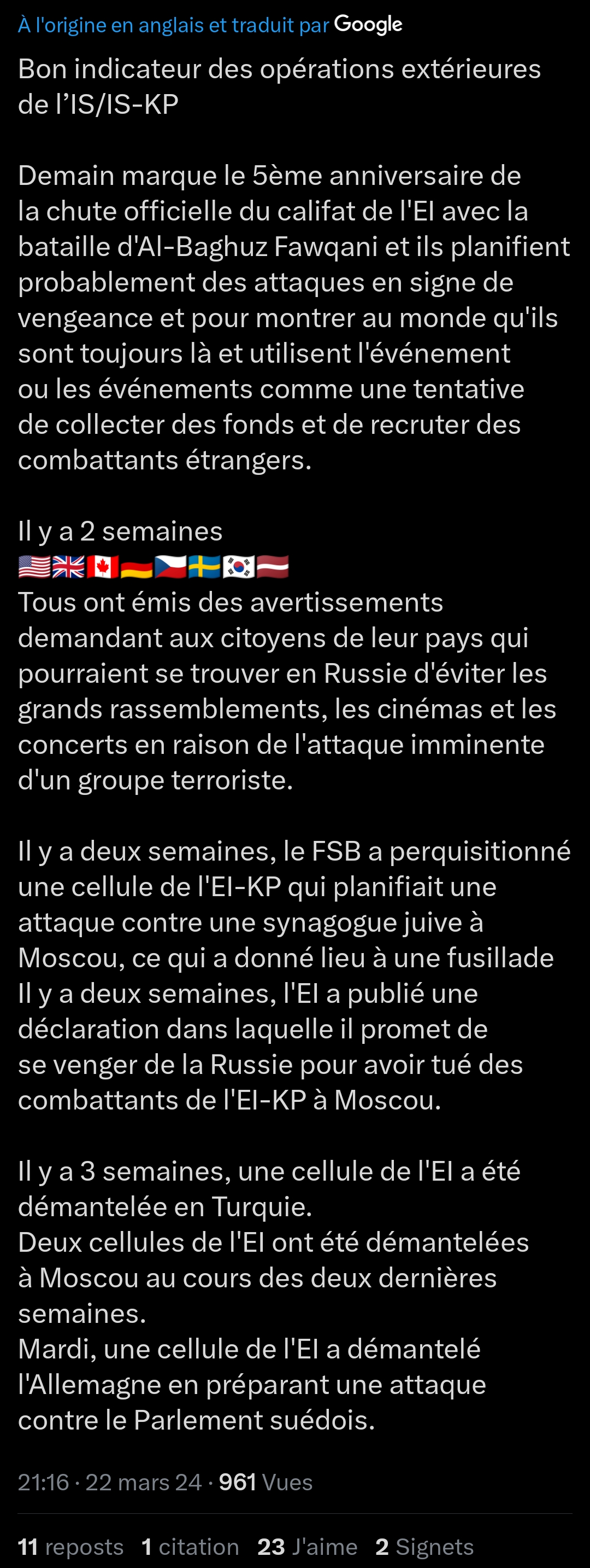 Brazeinstein | De toute façon dans tous les cas ce sera de "vrais" terroristes. Même si c'est téléguidé par le FSB ou quelqu'un d'autre dans l'appareil russe. Ce ne serait pas des agents secrets déguisés mais des "vrais" islamistes téléguidés et instrumentalisés.