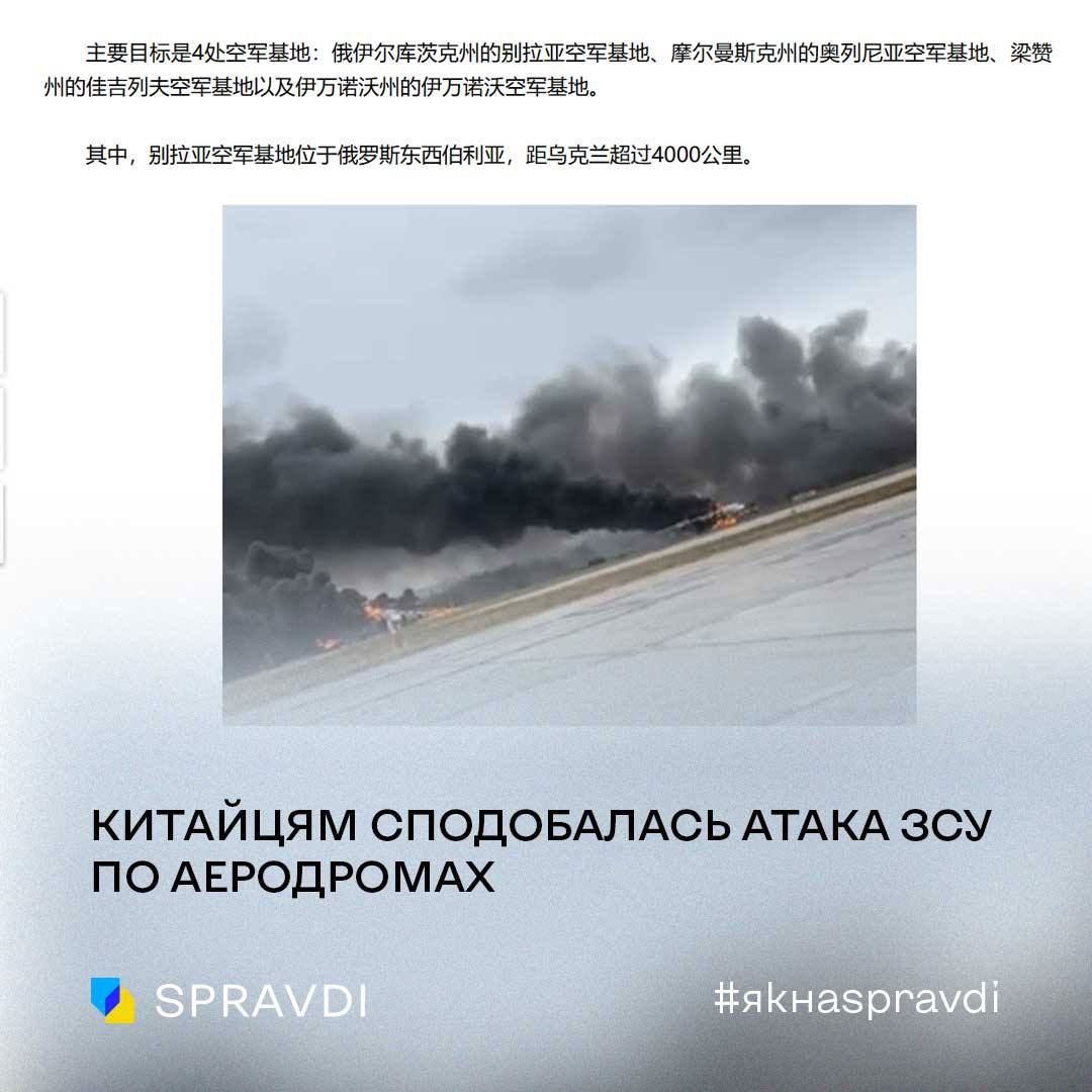 Chinese social media applauds Ukraine's operation that destroyed 41 Russian aircraft..