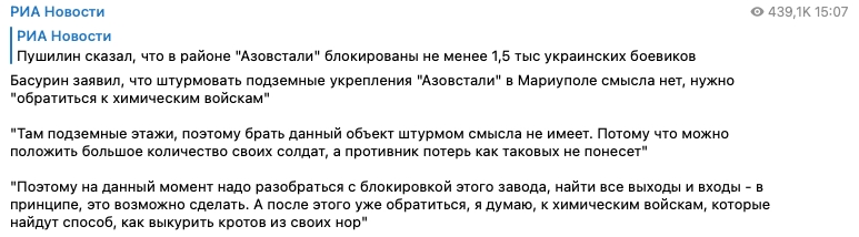 tim-timmy | Les "responsables" pro russes côté donetsk appellent tranquillement à gazer les ukrainiens retranchés dans les usines sidérurgiques de marioupol