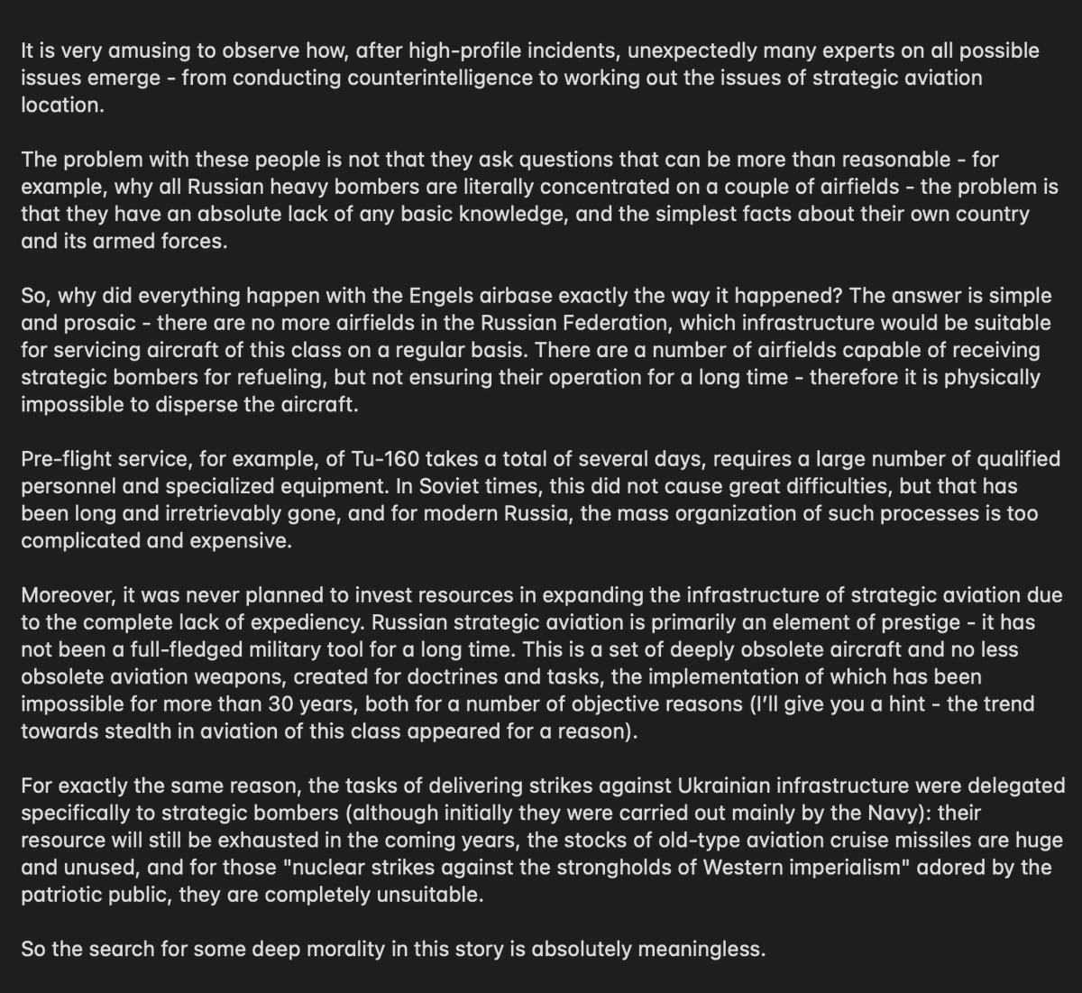jluc Nothing else matters ... | Pourquoi avoir concentré les bombardiers stratégiques sur les deux bases ruSSes (attention un indice l'incompétence ou le manque de compétences) :