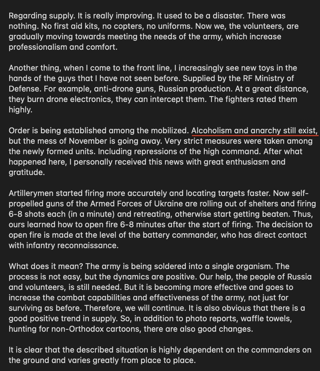 J'aime beaucoup l'optimisme naïf qui se dégage chez l'auteur, alors que n'importe quel officier d'une armée de l'Otan se facepalmerait de lire un tel truc émanant de ses troupes... Le truc qui me tue c'est "alors les gars sont vraiment contents avec les fusils anti drones qu'ils viennent de recevoir, ça se montre très utile", ceci après s'être fait bombarder pendant des mois par des drones... ça donne vraiment l'impression d'un entraineur d'une équipe de village qui est parvenu à se hisser en 8ème de finale de coupe de France, et qui découvre avec bonheur que s'entrainer 5 fois par semaine plutôt que 1 d'habitude a vraiment amené de la qualité technique et physique à son groupe. gronde armée Message édité par Kiveu le 14-12-2022 à 12:34:04 --------------- “The modern conservative is engaged in one of man’s oldest exercises in moral philosophy; that is, the search for a superior moral justification for selfishness.” |