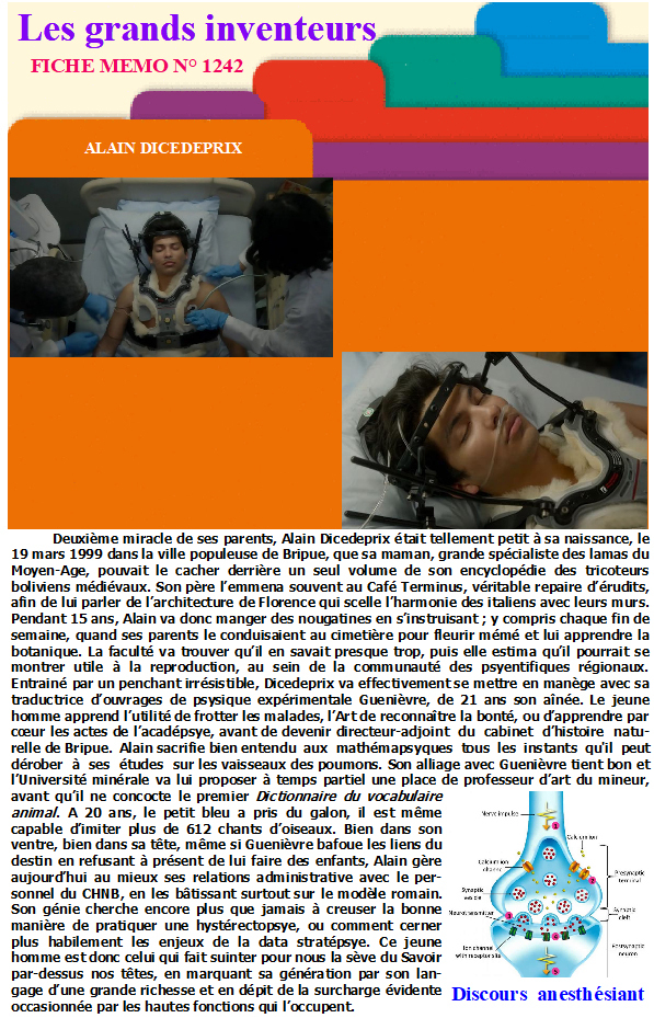 Salon des inventions Fiches mémo des grands inventeurs. Aujourd'hui : Alain Dicedeprix.