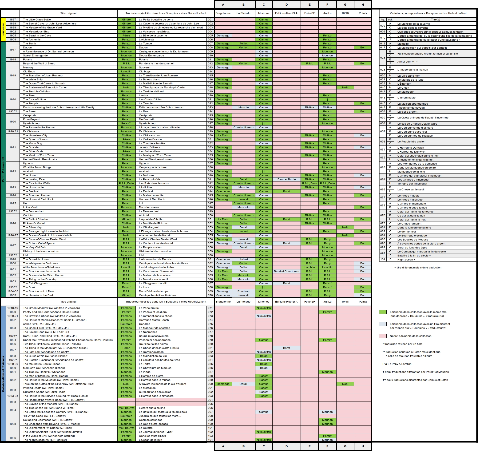 hpl-nyarlathotep I failed in life | Les tableaux ne recensent que les nouvelles. Je me suis tenu à > cette liste <.
