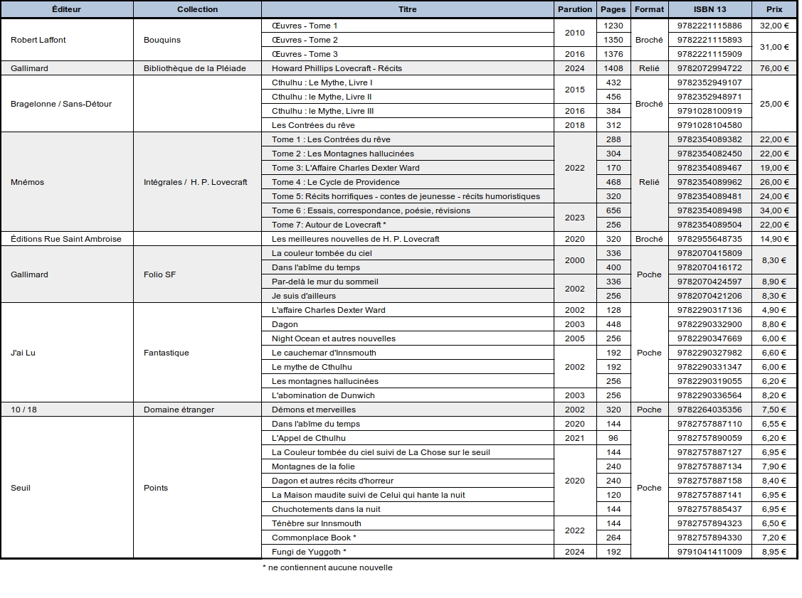 hpl-nyarlathotep I failed in life | Comparaison des éditions courantes en français