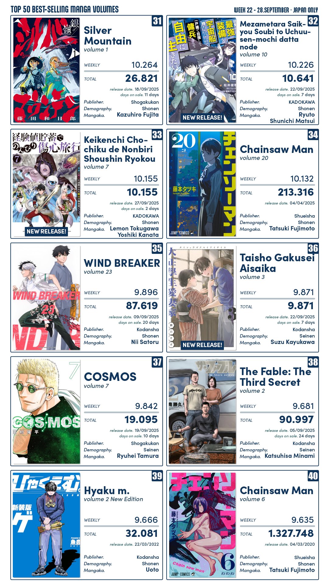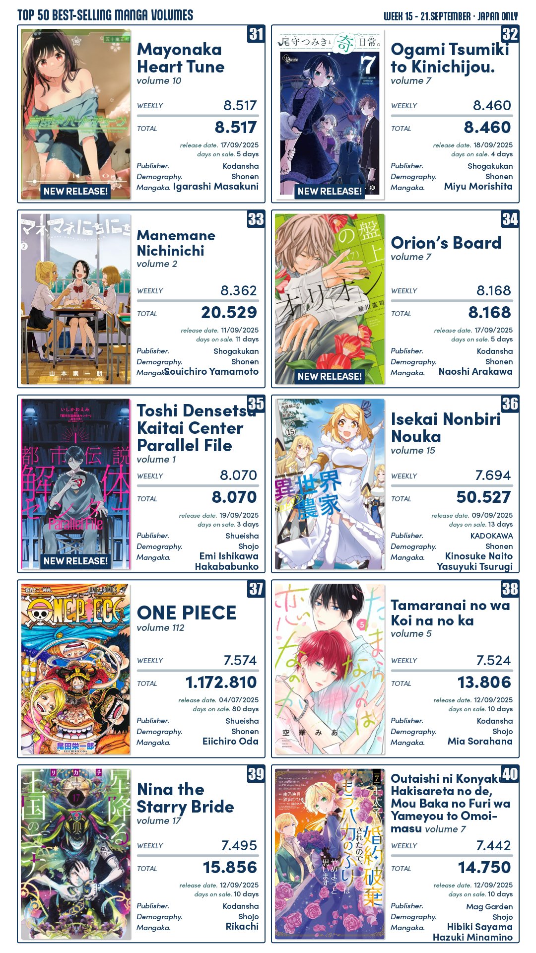 Crésus | Top Mangas de la semaine au Japon: https://www.nautiljon.com/actualite [...] 19553.html --------------- Profil Mangas et Animes |