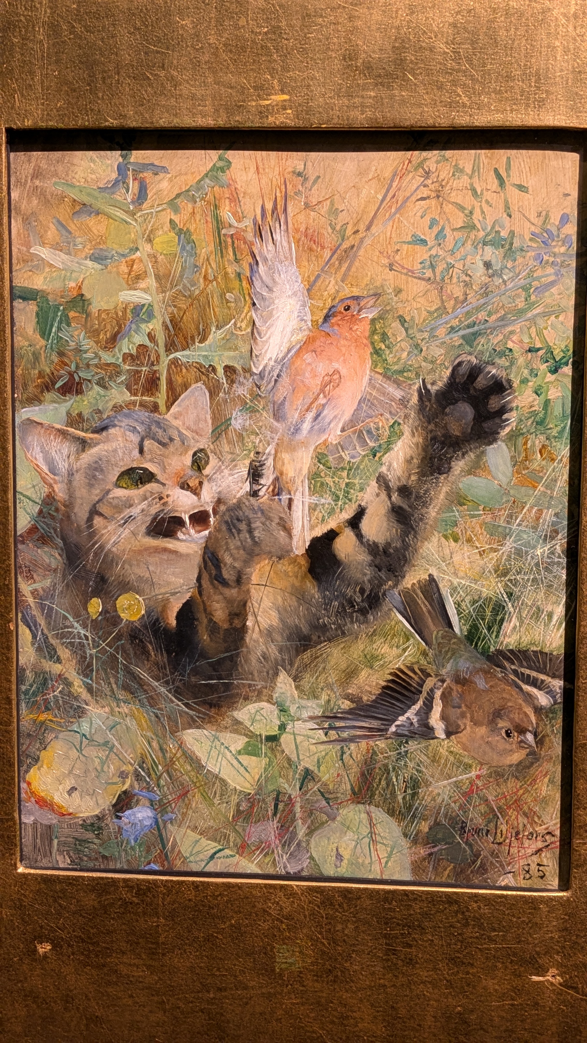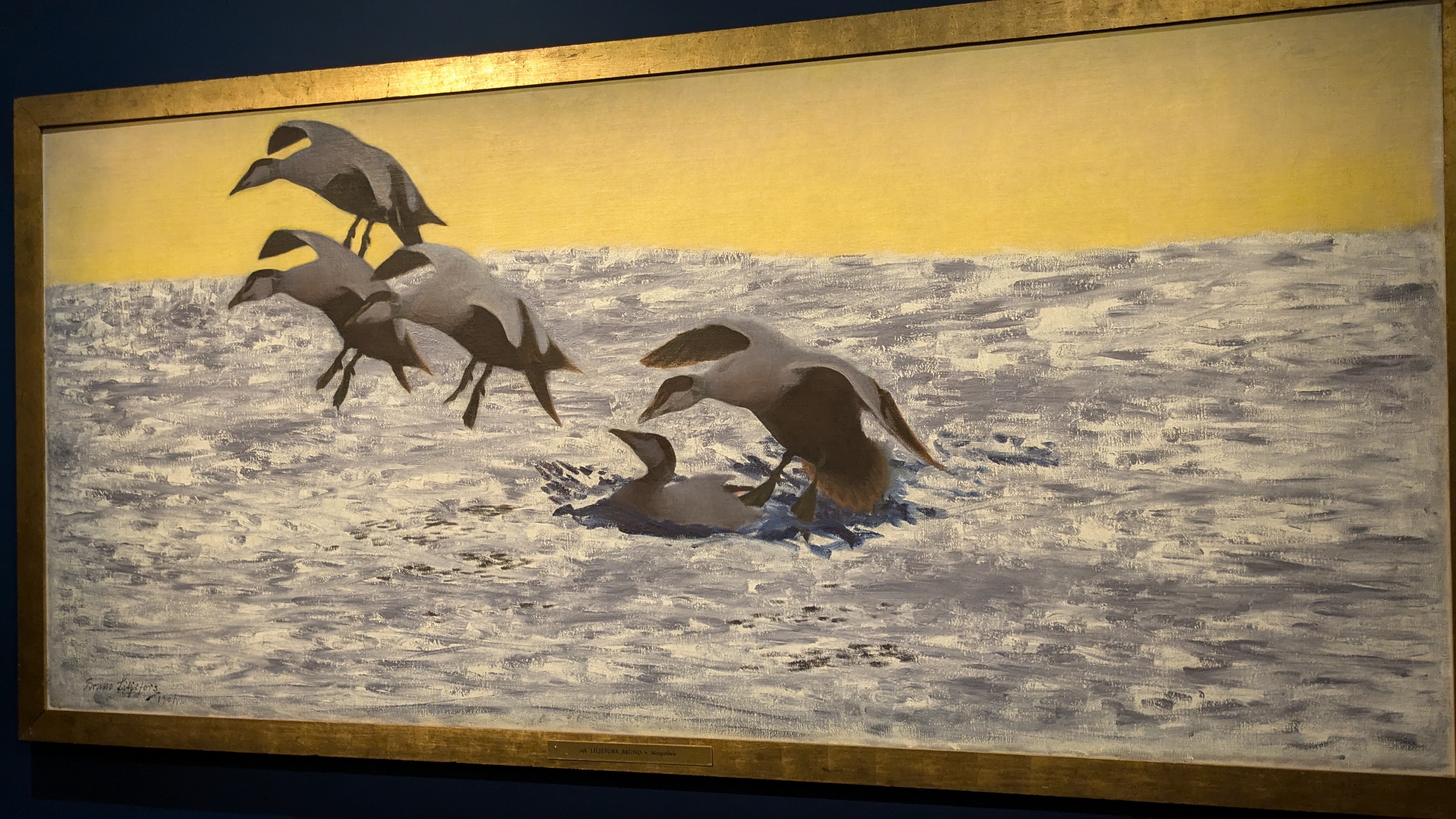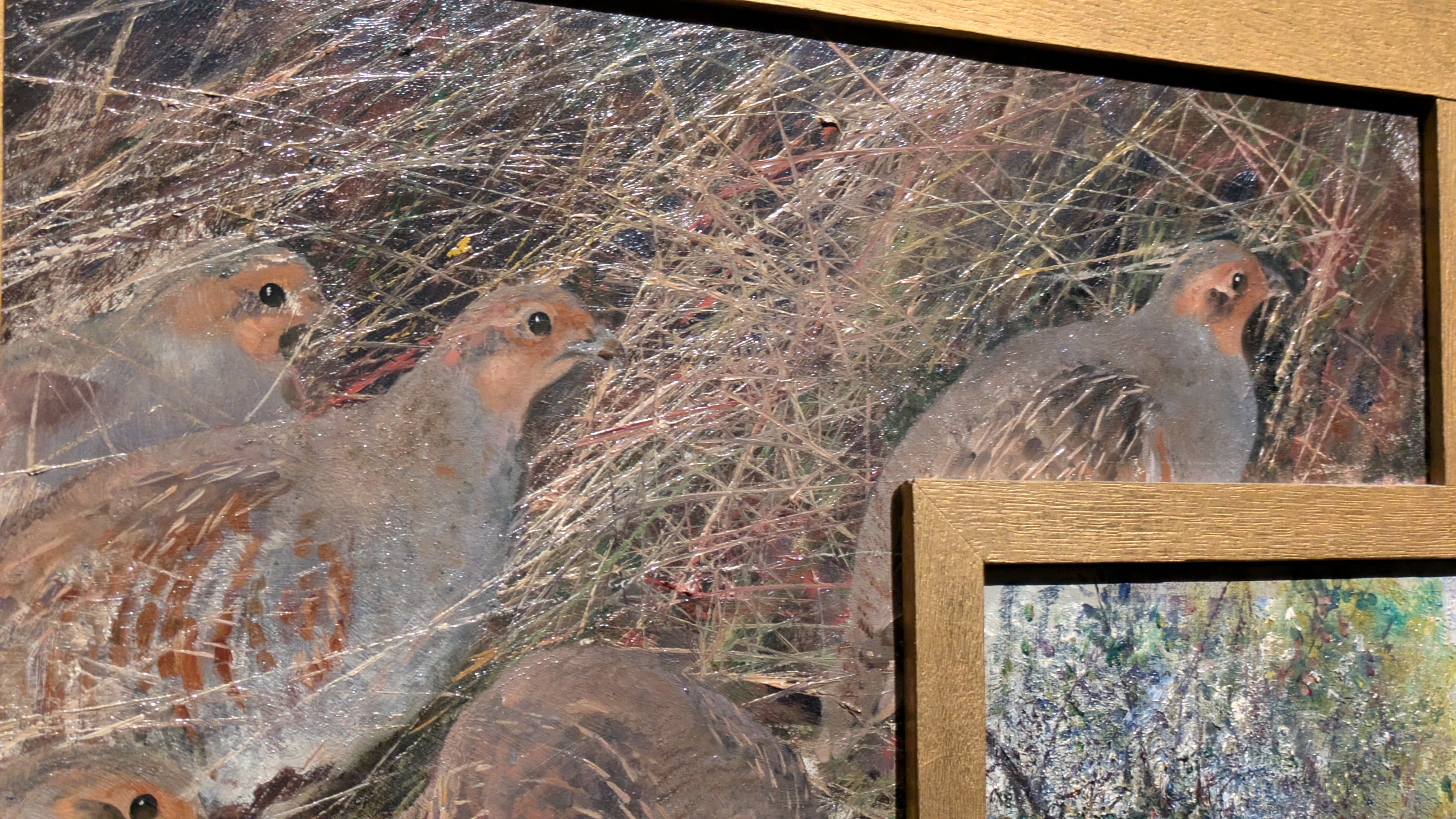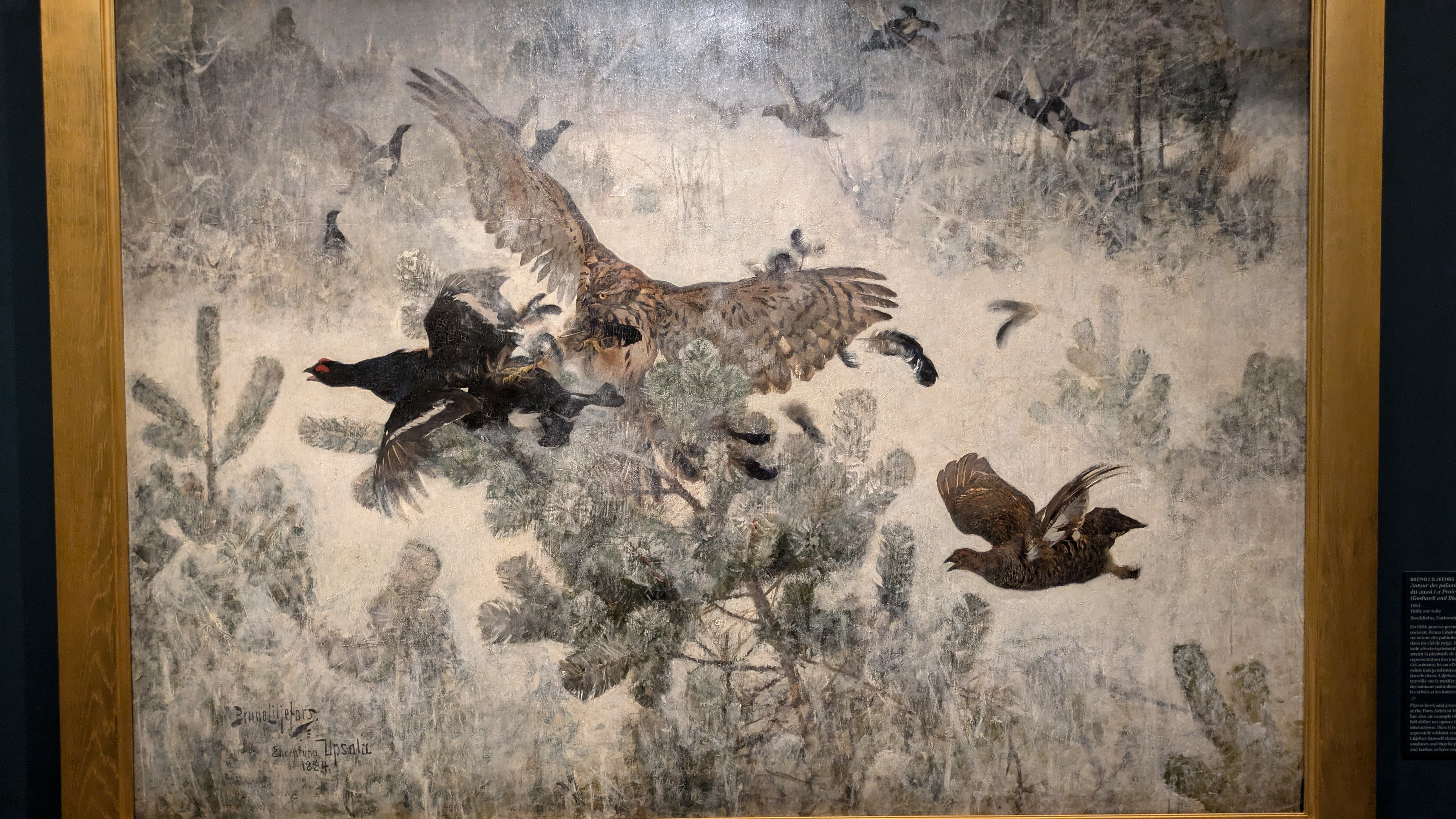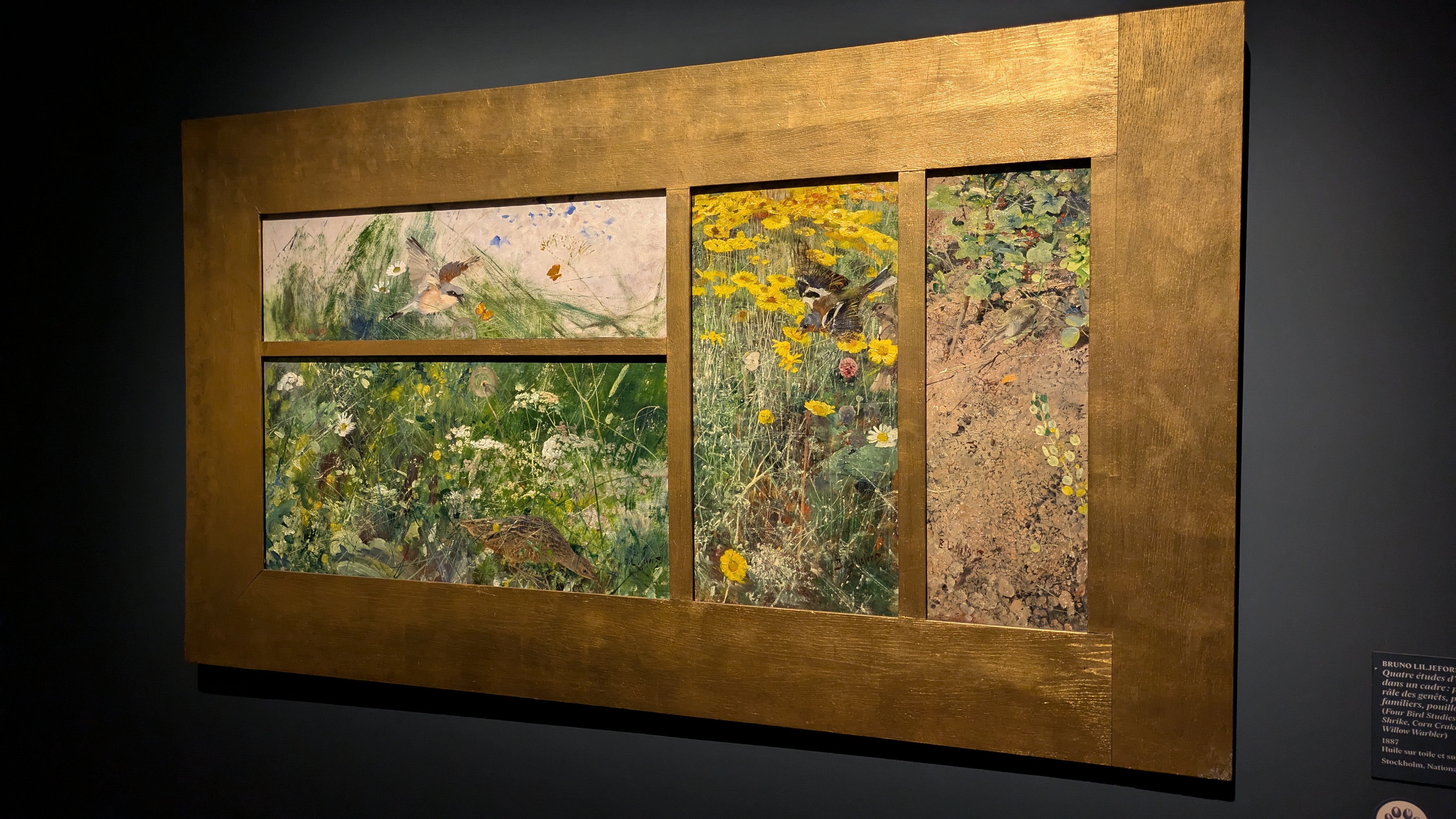 Le commentaire indiquait que c'est une pratique japonaise (dont j'ai oublié le nom) et il y a eu une période comme ça dans l'œuvre de Liljefors, deux des toiles présentées montraient vraiment des inspirations très fortes de l'estampe japonaise. J'ai trouvé ça intéressant à voir. Et, pour ces collages, j'adore le cadre complètement doré