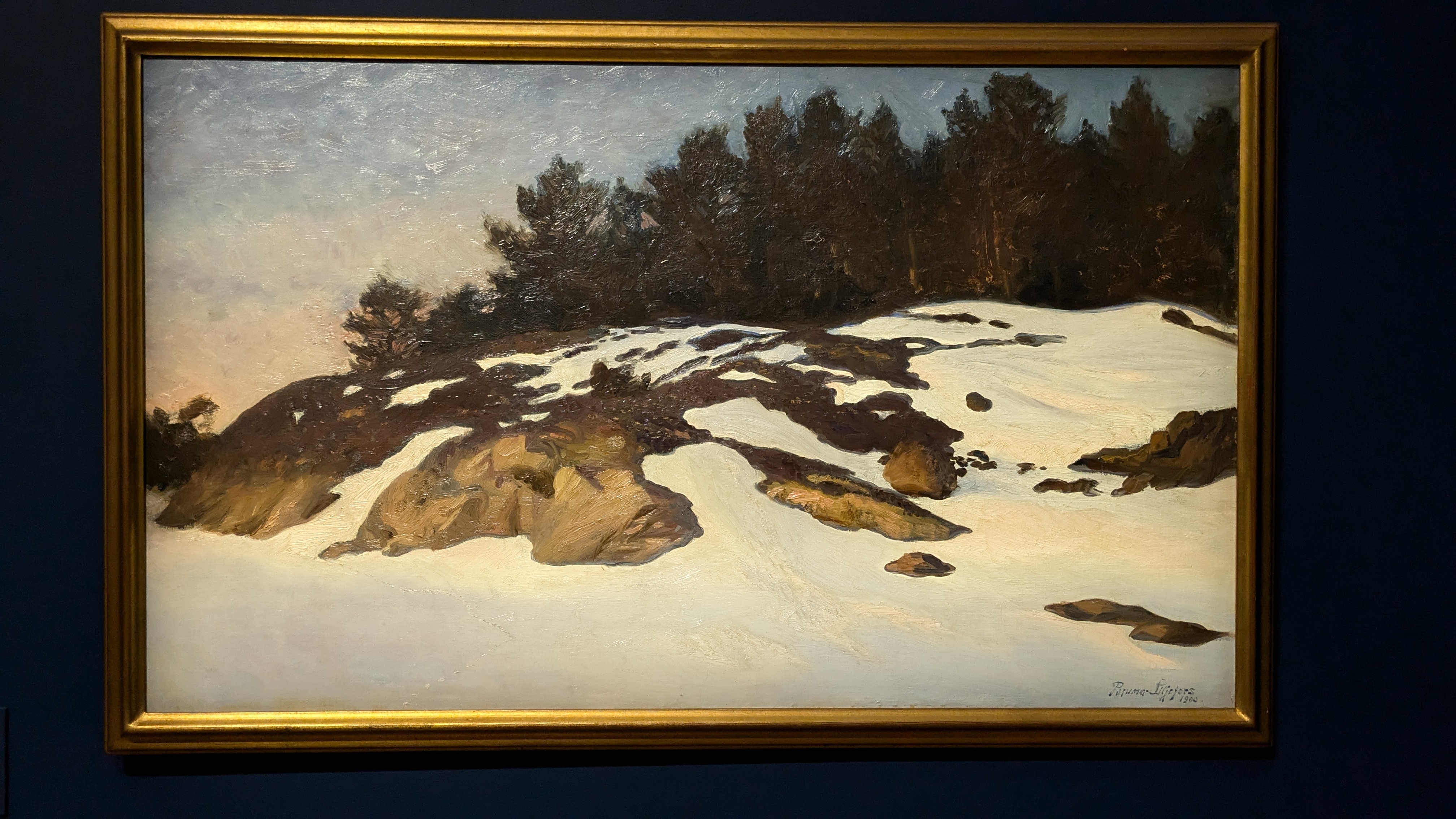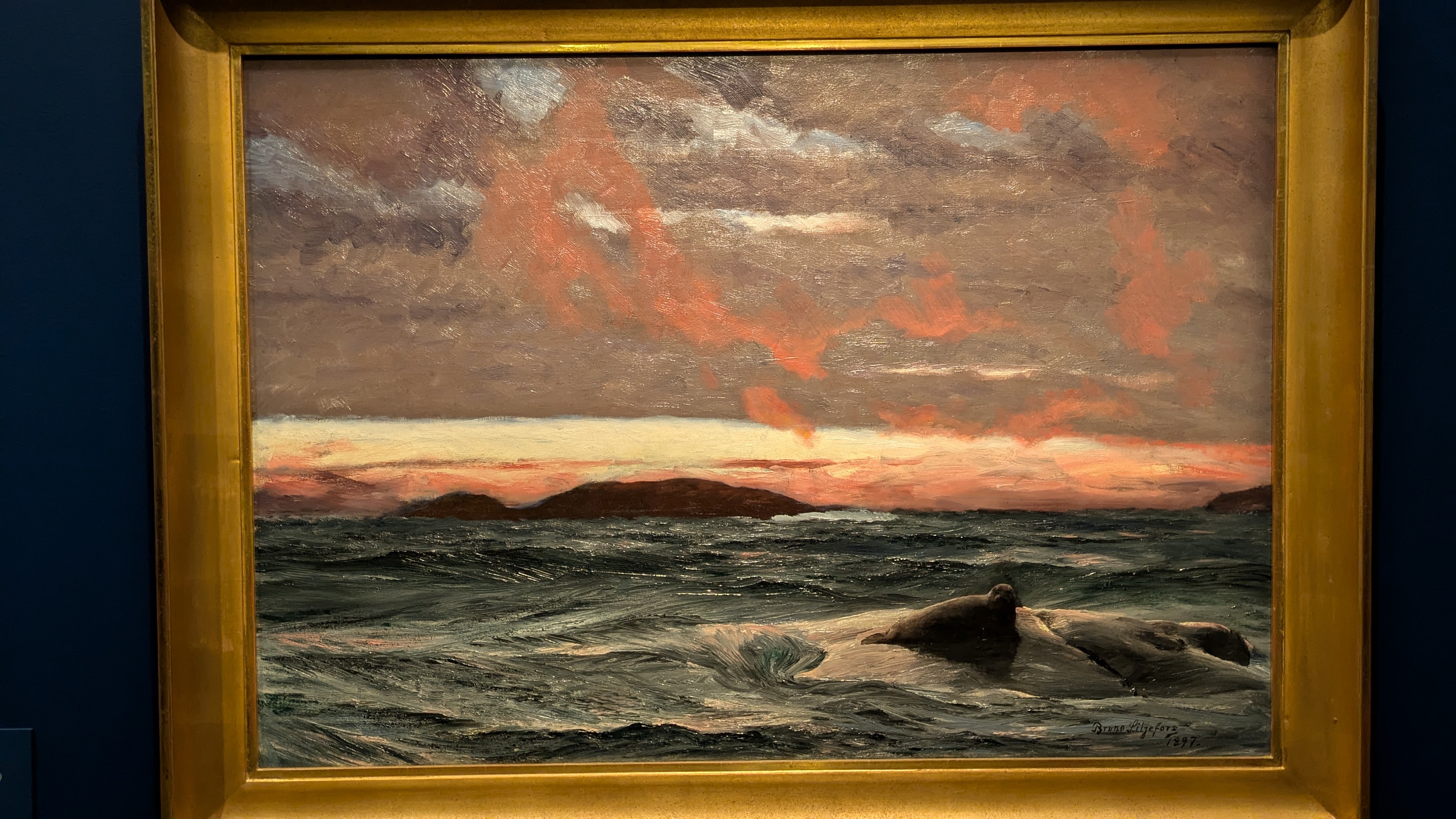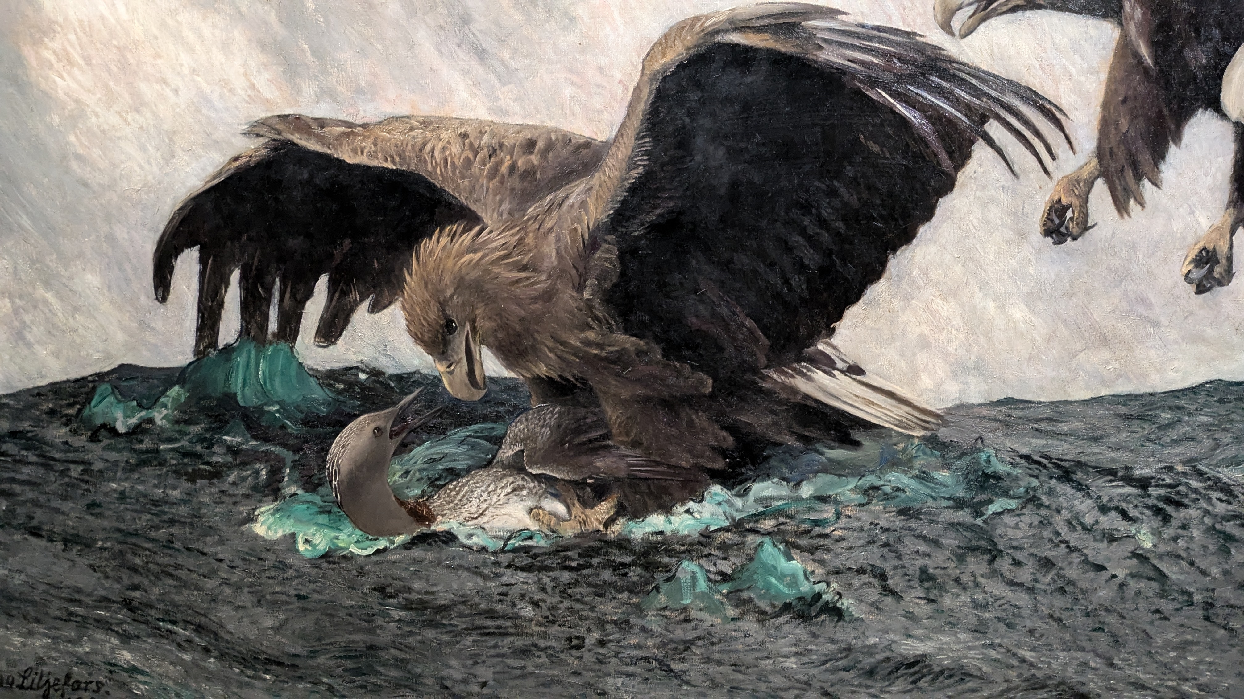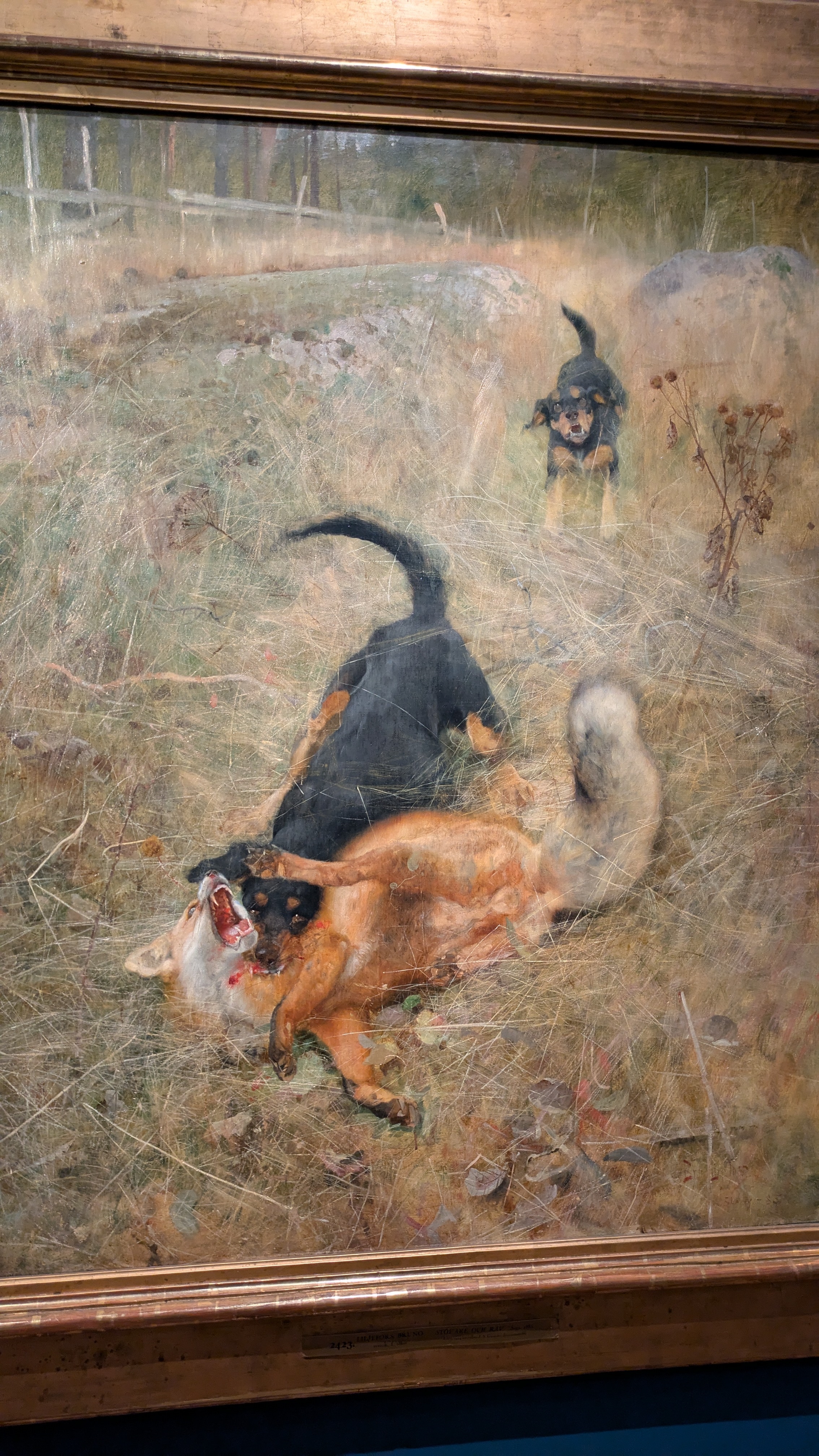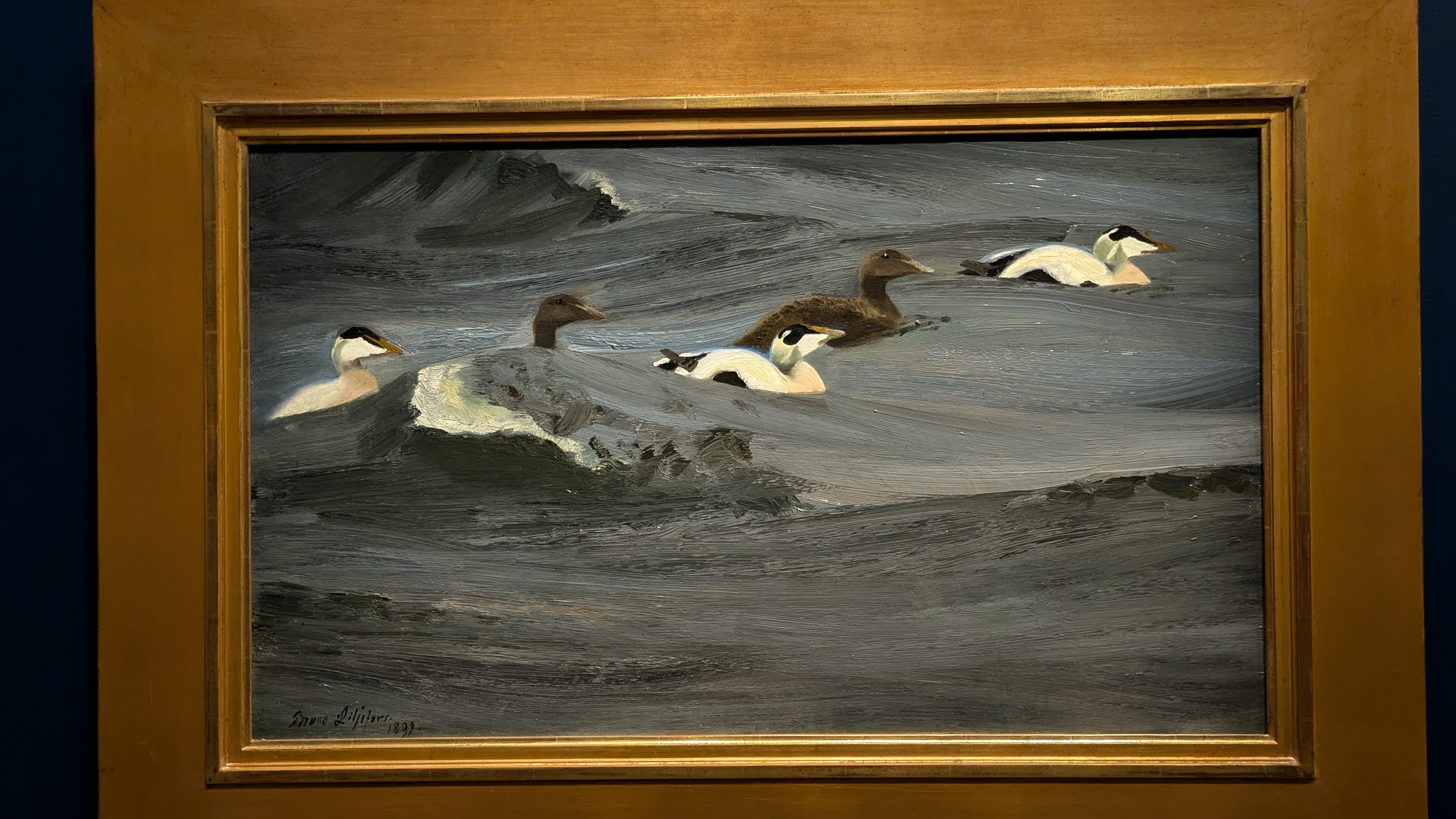 Le commentaire indiquait que c'est une pratique japonaise (dont j'ai oublié le nom) et il y a eu une période comme ça dans l'œuvre de Liljefors, deux des toiles présentées montraient vraiment des inspirations très fortes de l'estampe japonaise. J'ai trouvé ça intéressant à voir. Et, pour ces collages, j'adore le cadre complètement doré