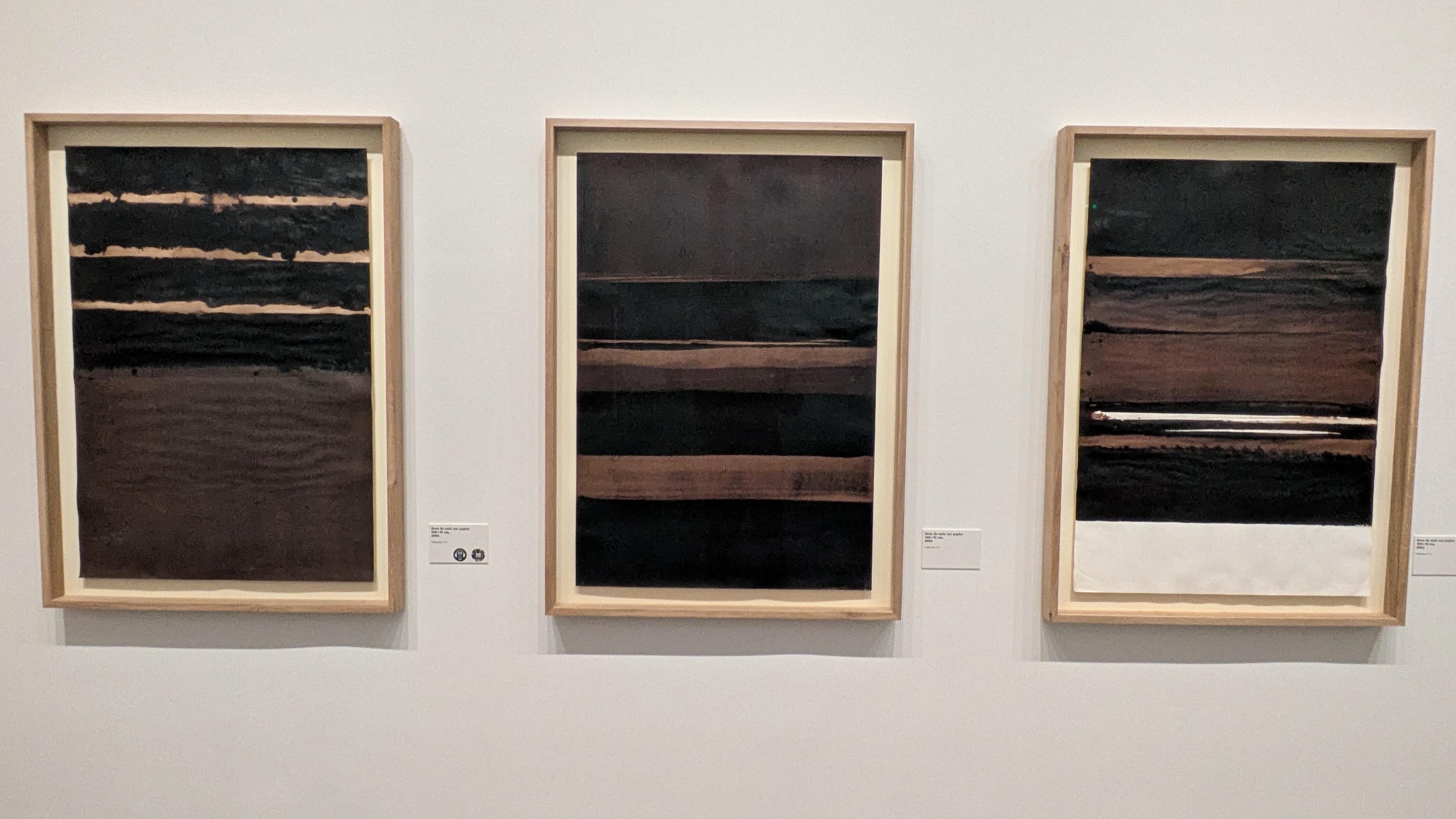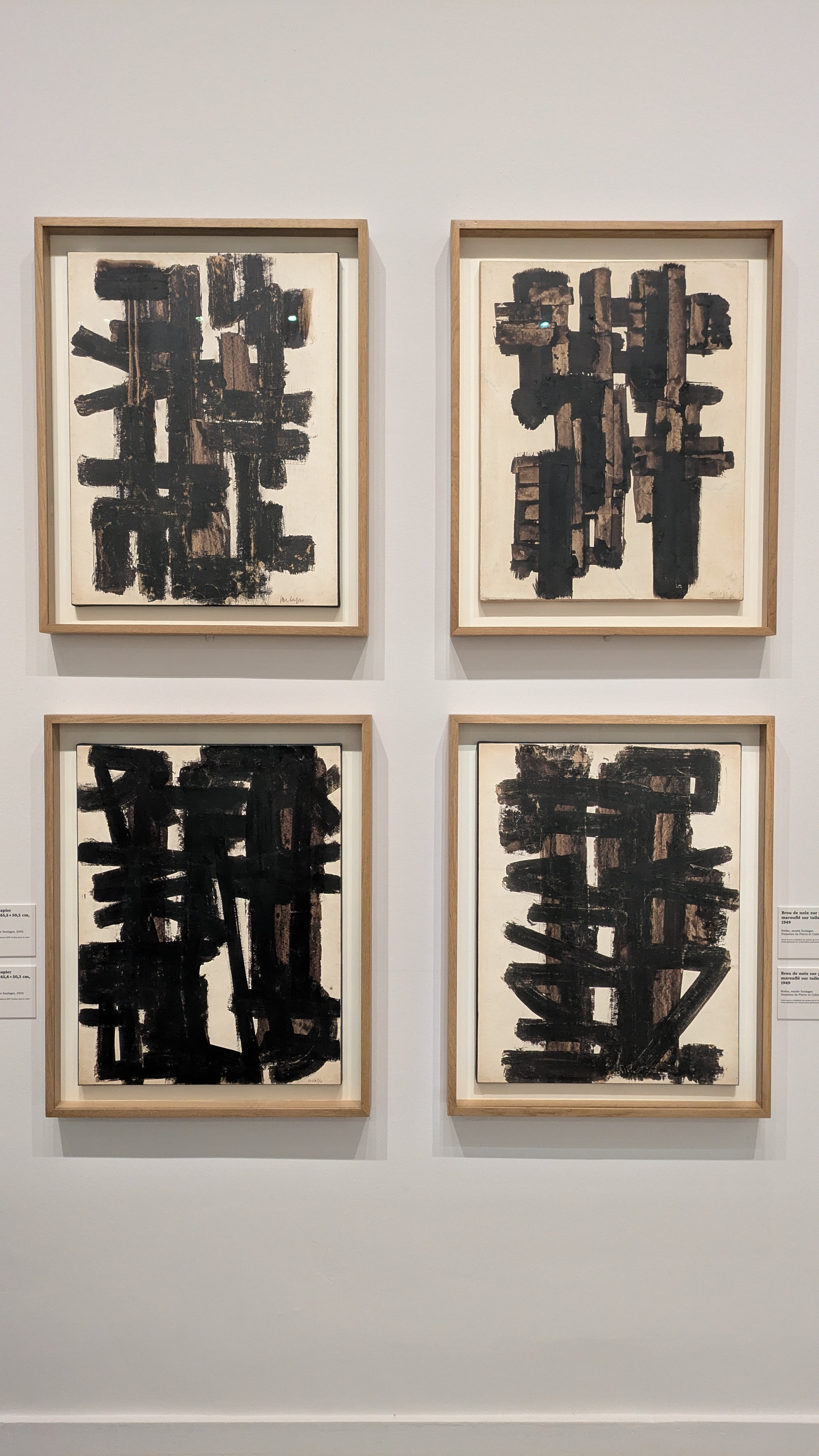 naldo | Belle expo au musée du Luxembourg sur la pratique papier de Soulages. Il y a même une expérience VR développée par Gordon (?) avec le musée Fabre mais horaires et 7 balles et les visuels m'ont pas convaincu. Quelle jubilation en tout cas ! Les séries sont belles, petit regret des cadres/vitre (ça fait un cadre dans un cadre dans un cadre, n'en jetez plus), mais c'est très agréable de suivre son évolution et sa quête infinie. Je pourrais mettre toutes les peintures, j'essaie de limiter |