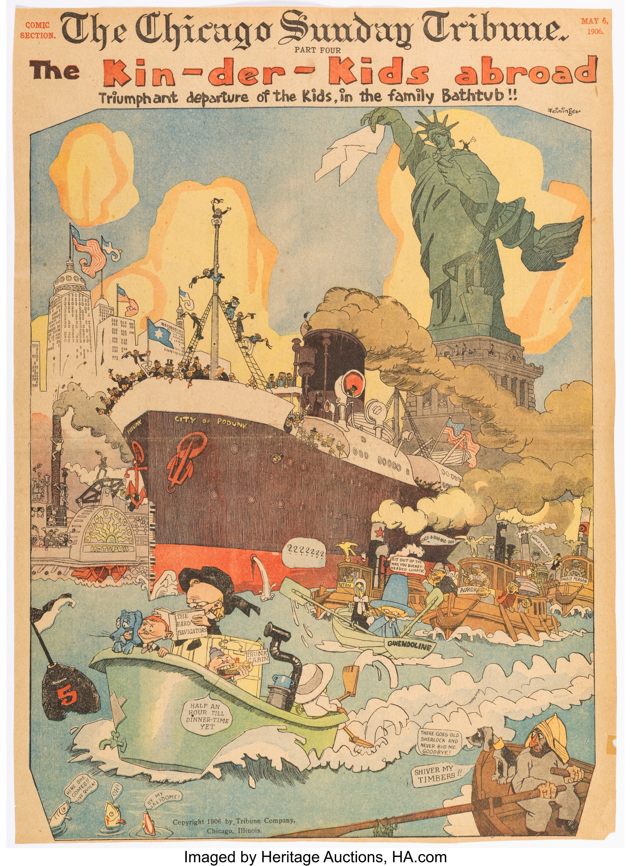 BoraBora Dilettante | Je découvre Lyonel Feininger (1871-1956) un touche-à-tout germano-américain semble-t-il bien connu des amateurs d'art, qui publiera deux strips au tout début du siècle dernier, très inspirés par Winsor McKay. Art Spiegelman a dit de lui qu'il avait "achevé une grâce formelle à couper le souffle, jamais dépassée dans l'histoire du medium". Fantagraphics a réuni toutes ses planches en un volume : The Comic Strip Art of Lyonel Feininger: The Kin-Der-Kids and Wee Willie Winkie's World.