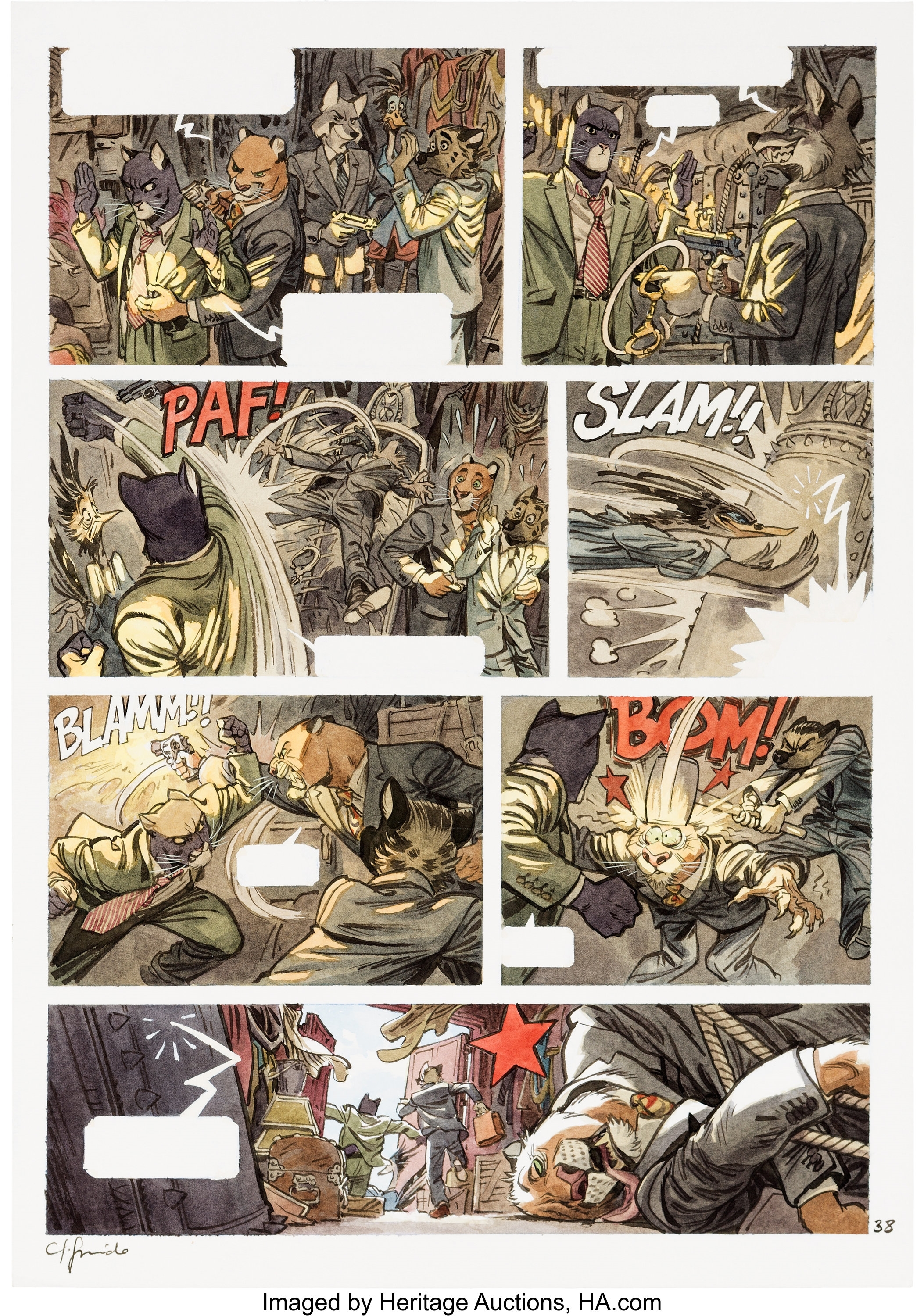 BoraBora Dilettante | Bon ben on y est allés et effectivement on en a pris plein les yeux. Les planches ne sont pas très grandes, 32x48 cm, et on admire d'autant plus l'incroyable précision du trait et la richesse des couleurs. Couleurs qui sont bien plus mates que l'impression sur papier couché des albums. Avec le grain du papier type aquarelle, très apparent, c'est juste magnifique. Message cité 1 fois Message édité par BoraBora le 15-11-2023 à 23:42:05 --------------- Qui peut le moins peut le moins. |