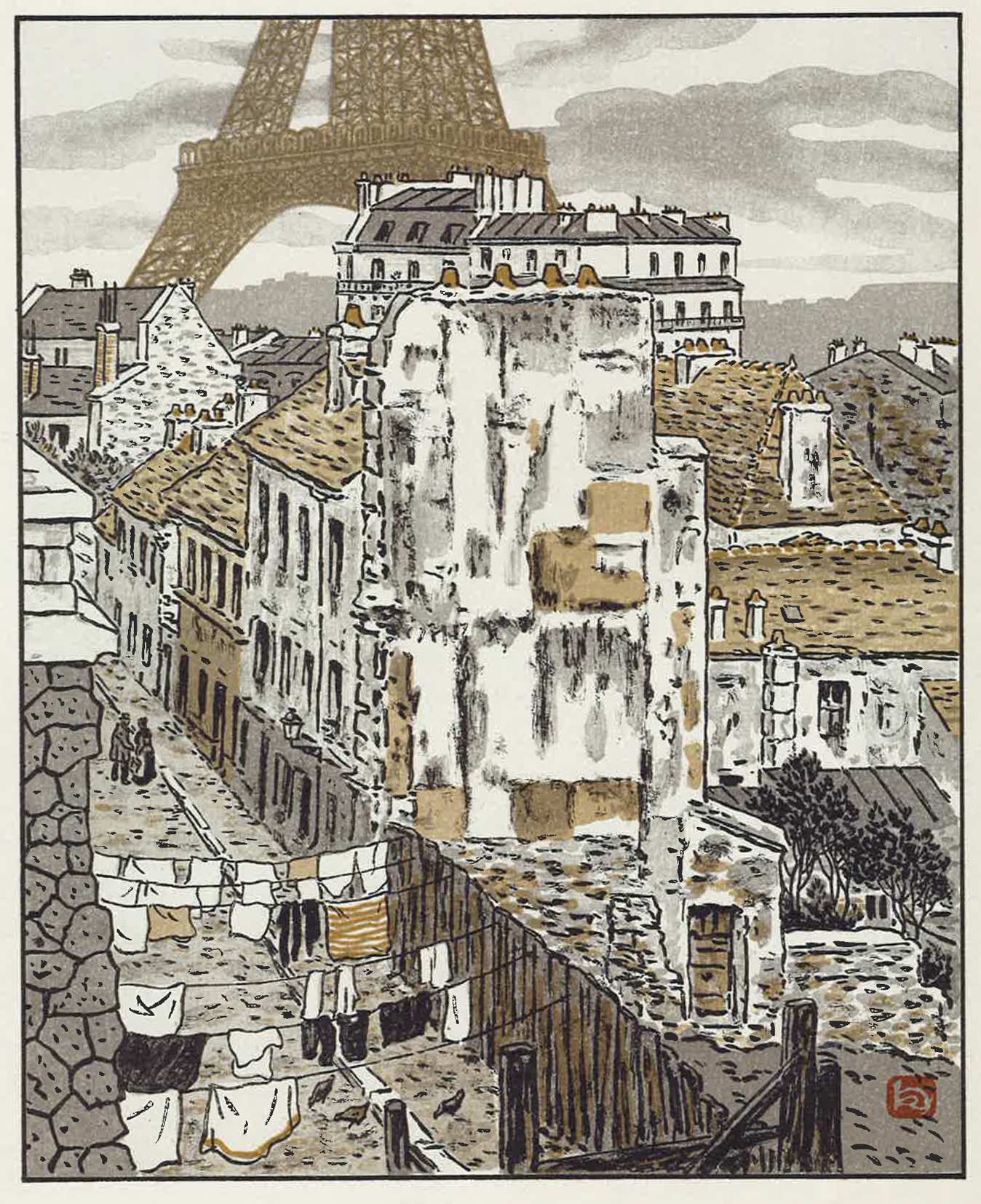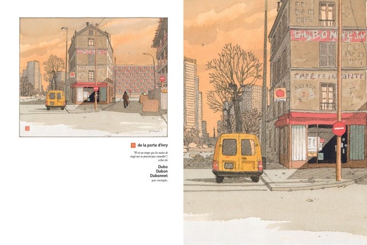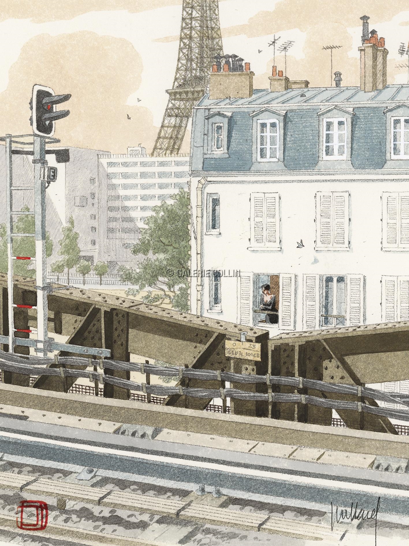 BoraBora Dilettante | Au milieu des années 80, Juillard était tombé sur une monographie d'Henri Rivière, un artiste assez obscur à la charnière des 19ème et 20ème siècle. Rivière, qui comme beaucoup d'artistes de sa génération admirait les estampes japonaises, avait réalisé une série de gravures sur bois intitulée 36 vues de la tour Eiffel à l'imitation des 36 vues du mont Fuji d'Hokusai. Une version reliée de 36 lithographies sortit en 1902. En 2002, Juillard livra sa version 21ème siècle dans son medium de prédilection, l'aquarelle :