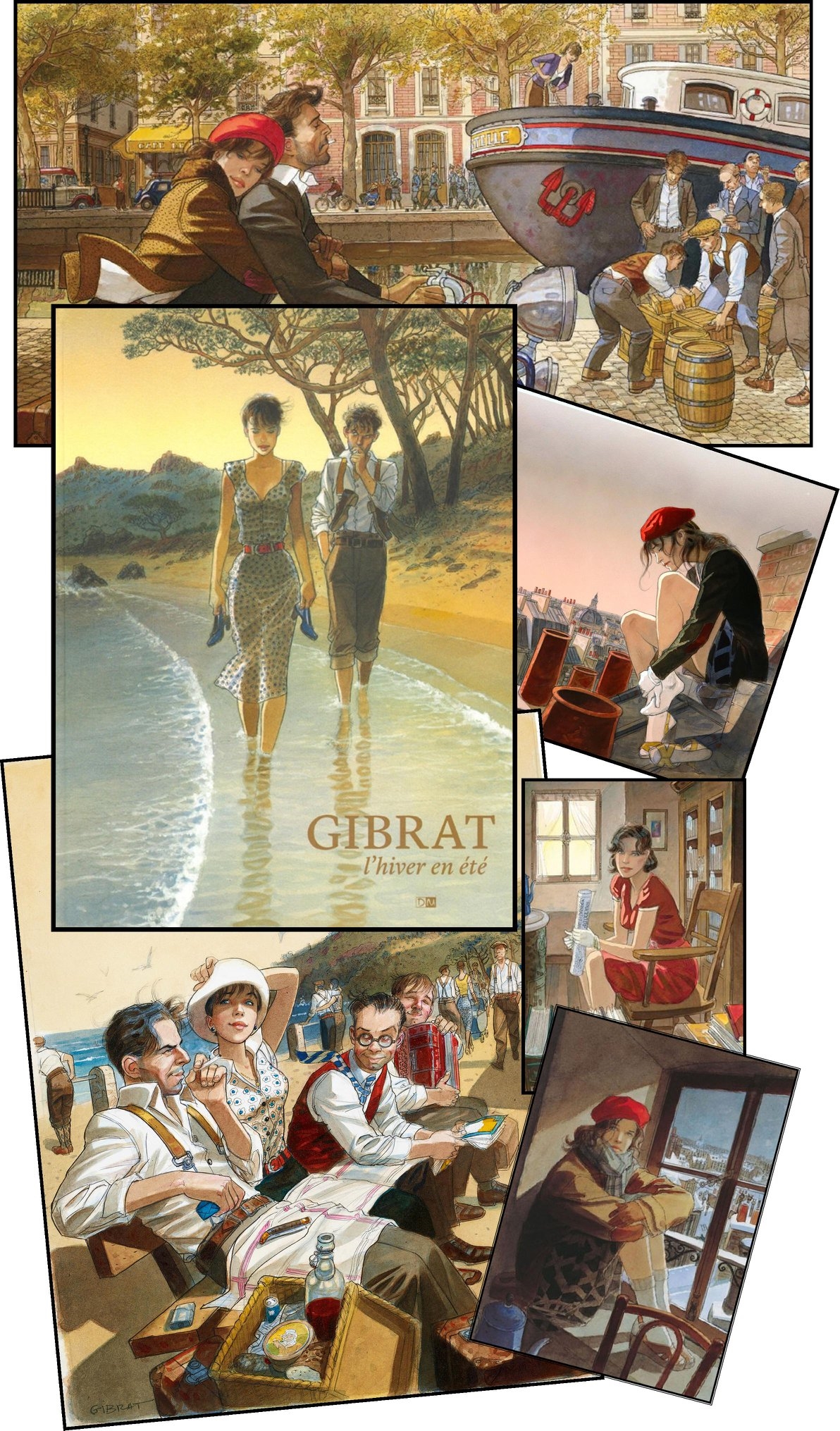 BoraBora Dilettante | L'hiver en été, un artbook de Gibrat (2019). Je l'avais acheté en même temps que la monographie sur Baru il y a déjà un moment mais un rapide CR me fournit un prétexte à le rouvrir (pas qu'un prétexte soit nécessaire mais bon...). 180 pages qui couvrent uniquement la période qui commence avec le Sursis en 97. Beaucoup d'images hors albums : lithos, sérigraphies, ex-libris etc. ainsi que des illustrations et couvertures de diverses éditions. Quelques pages de BD aussi, sans les textes et pour certaines avec en vis-à-vis les crayonnés très précis et absolument splendides. Bref c'est beau du début à la fin.