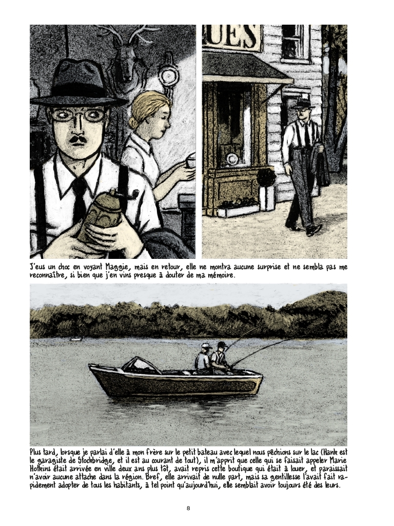 BoraBora Dilettante | Götting : Watertown (Casterman). Je suis pas bien fan d'histoires qui se passent aux USA écrites par des Français, étant sauf exception des accumulations de références à d'autres oeuvres et souvent aux pires clichés. Ca sonne souvent faux puisqu'on a tous un peu les mêmes références, lecteurs comme auteurs. Facteur aggravant, l'histoire se passe probablement dans les années 30/40 et feuilleter l'album conjurait wattmille photos, films, romans, séries. Et comme si ce n'était pas assez, la plus grande partie de l'album est en images surmontées d'un monologue intérieur, ce que j'ai toujours trouvé assez inapproprié en BD (comme au ciné, d'ailleurs, avec la voix off). Bref, je l'avais eu en épreuves non corrigées il y a 10 ans et je viens seulement de le lire, c'est dire si j'étais enthousiaste. Bah bonne surprise. Message édité par BoraBora le 03-02-2026 à 15:12:09 --------------- Qui peut le moins peut le moins. |