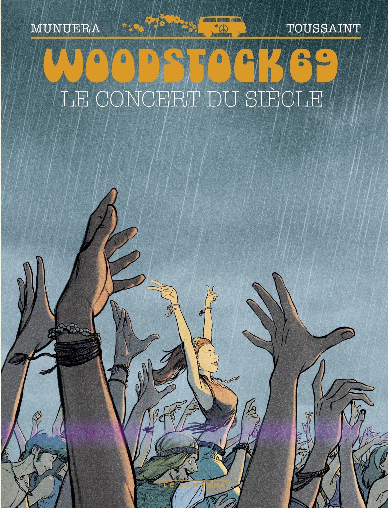 Voici donc Woostock 69, de Kid Toussaint et José Luis Munuera. Sous-titré "Le concert du siècle", carrément (les mêmes avaient déjà fait "La course du siècle, que je n'ai pas lu). Tant qu'à faire dans l'image pieuse, autant y aller à fond. Alors dès le début on se demande un peu sur quel pied danser. Il y a la dédicace à la génération de ses parents, OK, mais c'est aussi censé être un "drame burlesque". Ah ? Tous les clichés attendus sont là, mais poussés jusqu'au ridicule au point que l'on ne sait plus à quel degré il faut les lire. Le fil rouge de cette fiction dont Woodstock est le cadre (c'est pas un docu, malgré le petit dossier documentaire à la fin) est quant à lui le plus gros cliché des comédies romantiques.