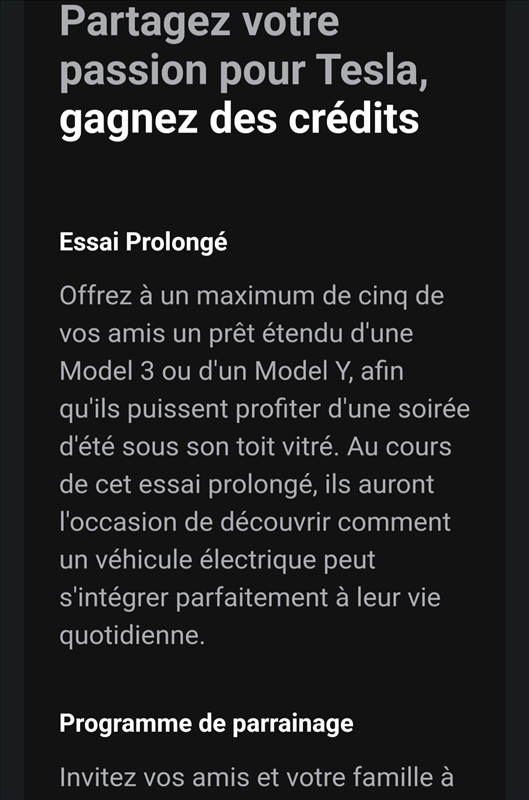 non, t'as reçu ça par mail ou dans l'appli ? c'est quoi le concept ? En 2 jours pas sur que les gens se fassent une grande idée car ils n'auront justement pas les "problèmes" liés à la posession d'un VE (recharge). Cela dit c'est malin car la voiture est tellement top que je connais pas grand monde qui l'a essayée et pas achetée