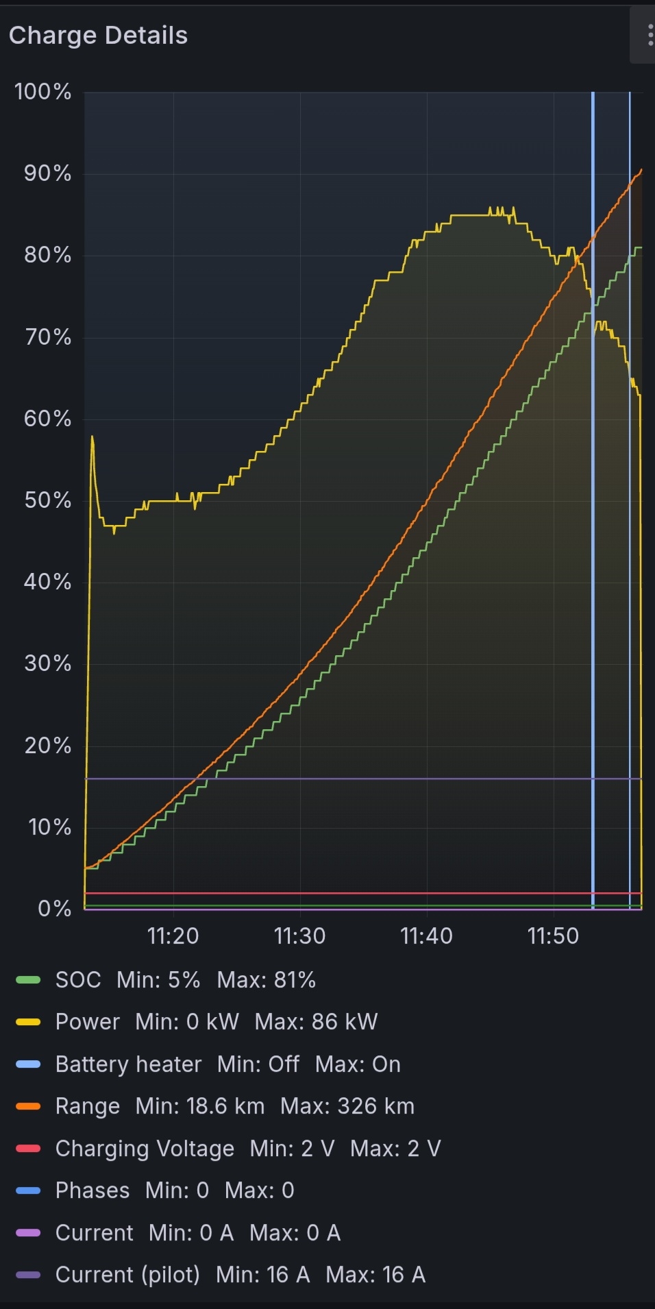 Y a un fix dans la dernière maj sur ce sujet , j'ai eu le temps de le lire en 44 minutes ce matin Après a la Tossiat c'était de la grosse industrie et ça plantait puis repartait ensuite, j'ai 4 session de charge sur teslamate pour 10 minutes de charge. Au début ça dépassait pas 80 puis après un plantage c'est monté a 128 soit la courbe de charge normale mais en discutant vite fait ça plantait un peu partout on sentait qu'à 32 VE en grosse charge ça mettait le système dans le dur. |