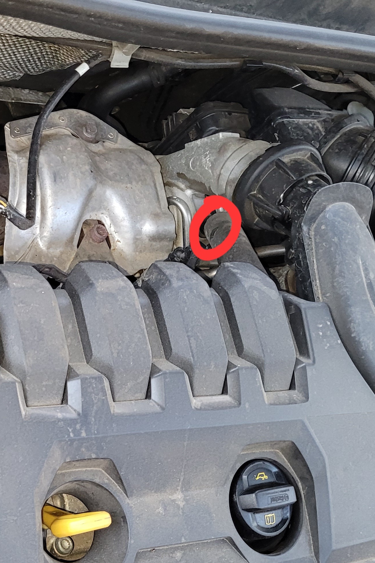 Le tuyau est exactement à l'endroit de ta flèche bleue "turbo".