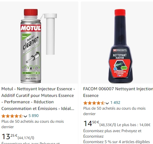 Grinch | oui, même moins cher - par ex motul et facom c'est moins de 15€ - tous utilisent la meme chose c'est grosso modo du kérosène, qui va nettoyer tout le circuit d'injection tu mets 1 flacon entier (300ml) pour 15-20 L de carburant ( dosage concentré ) également appelle une concession VW et demande avec ton VIN si ton véhicule est concerné par le rappel injecteur : https://car-recalls.eu/fr/vw-skoda- [...] njecteurs/ ( il y peu de chance mais vaut mieux être sur ) Message cité 1 fois Message édité par Grinch le 13-08-2024 à 13:49:55 --------------- Feedback |