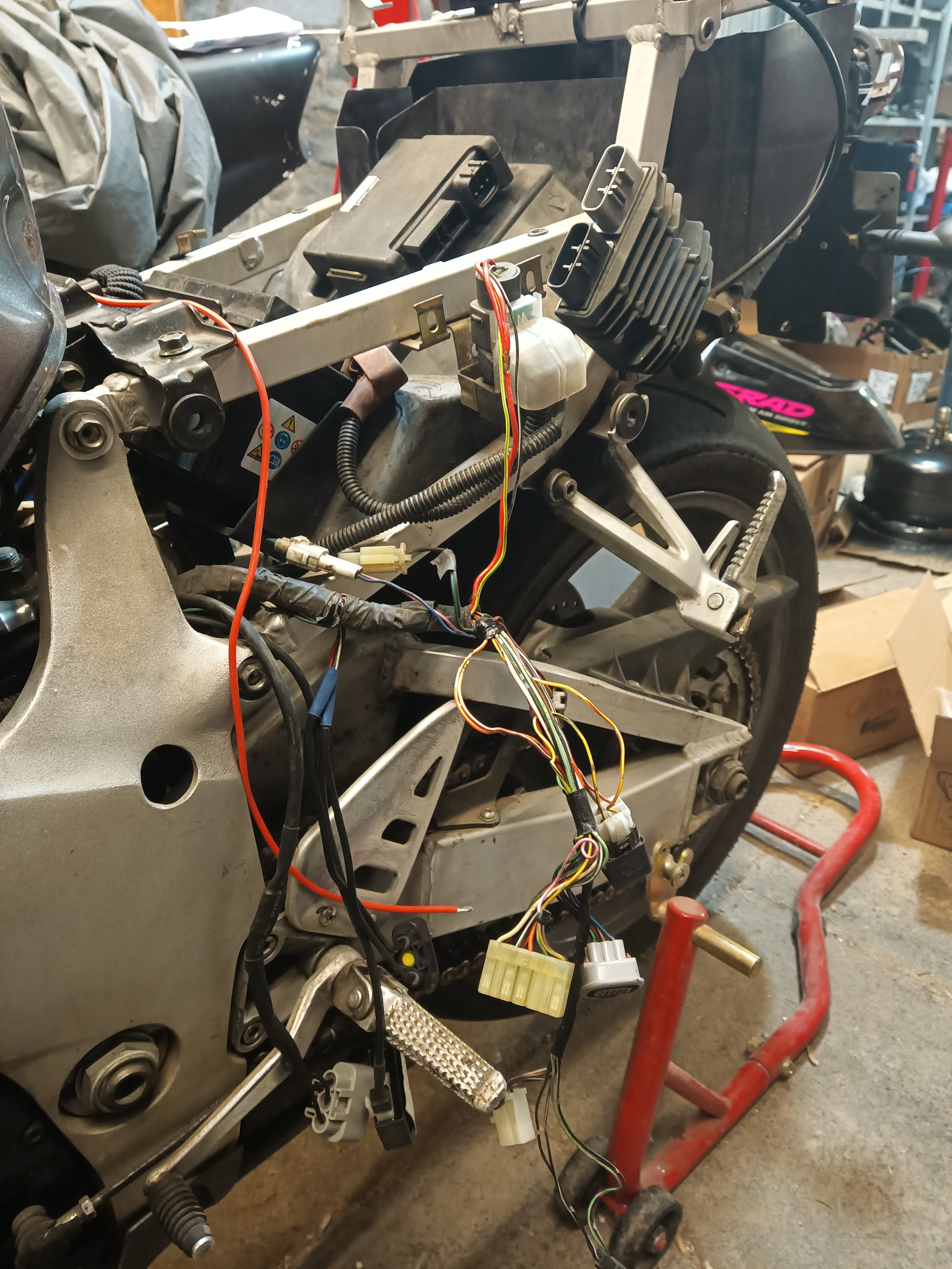 lapattefolle | Mylife, histoire de SRAD Donc on parle de ça (750 à carbus) : Début de l'histoire septembre 2020 Go carbus, surtout le 4 : démontés et soufflés de partout, tant que c'est démonté on passe à la méca aussi. Tout ceci avec la motivation d'une moule, donc En me disant que c'est ptet ça et de toute façon ça peut pas faire de mal, j'avais acheté des kits réfection carbu (joint de cuve, pointeau, qques autres joints osef). Je remonte, putain fuite d'essence, un joint de cuve. Bon bah OK les kits vont servir alors je les fais tous. Et là je me souviens d'un gars sur gixerfrance.com (nom du site non contractuel) qui disait que le système de contrôle électronique de levée des boisseaux il demande qu'à tomber en rade. Test : putain elle marche sur tous les cylindres ! Sa race de sa grand-mère la PUTE Ce serait quoi, la tension qui chute ? (compteurs qui coupent, donc problème électrique, donc baisse de tension, le mec est malin attention) Constat en lisant le faisceau sur la RMT scannée en 640x480 : le +12V qui alimente les bobines et la pompe à essence, c'est du courant qui passe par : le neiman, le capteur d'embrayage, le coupe-circuit, le relais de capteur de béquille, 3 connecteurs. Donc évidemment en démontant je tombe sur des cosses archi oxydées, je cherche pas à comprendre : je tire un fil depuis la sortie de tout ce bordel (vive la RMT pour ça), ça devient un signal "power on" pour un relais 40A qui prend la puissance à la sortie du fusible principal, et le réinjecte dans le bout de faisceau pompe + bobines. ÇA MARCHE PUTAIN §§§ Je soupçonne que mes bobines aftermarket ont une impédance au primaire un peu faible comparée à l'origine et que ça tire un courant un peu costaud, donc ça augmente la chute de tension dans les vieux connecteurs, Bilan : sur l'élec de cette guez tout est dimensionné d'enculé au plus petit, le cablage de puissance bobines et pompe c'est genre du 1mm² bordel, et pas de séparation signaux/puissance. Je conseille cette pince qui est cool, et globalement cette marque : https://fr.aliexpress.com/item/4001238448205.html (UNI-T UT210E) Cette moto m'encombre mais j'arrive pas à me décider à la vendre. C'est principalement sentimental, ancienne moto de Brains tout ça, et ça reste une expérience "intéressante" quand on a une moto moderne à côté. TLDR les vieilles meules mangez-en, l'élec ça demande de sortir les neurones et la RMT, les carbus c'est cool si on s'en sert, une rampe posée sans essence et hors d'une moto dans une position inconnue c'est à réviser obligé, je le saurai, voilà voilà. Message cité 3 fois Message édité par lapattefolle le 02-11-2022 à 21:58:37 |