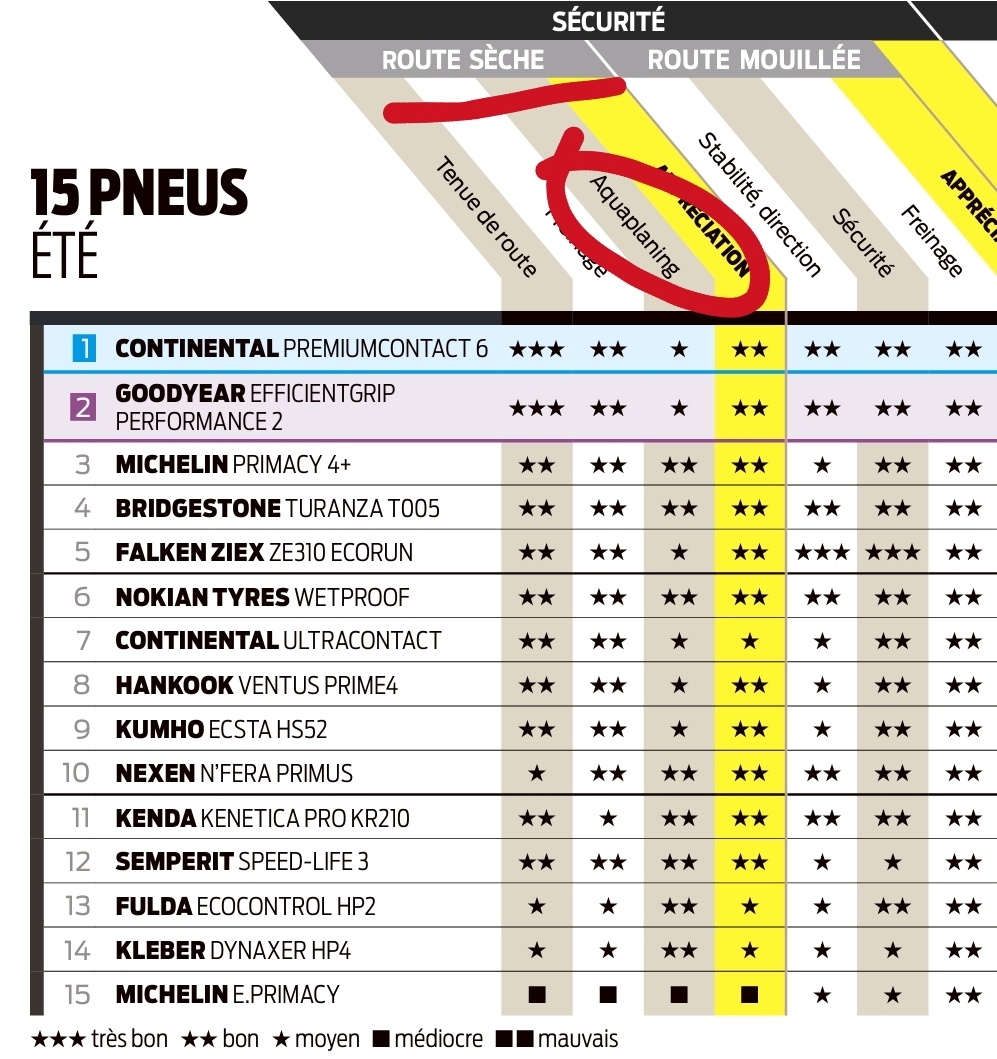 chienBlanc | Comparatif des pneus été dans le "Que choisir" de mai :