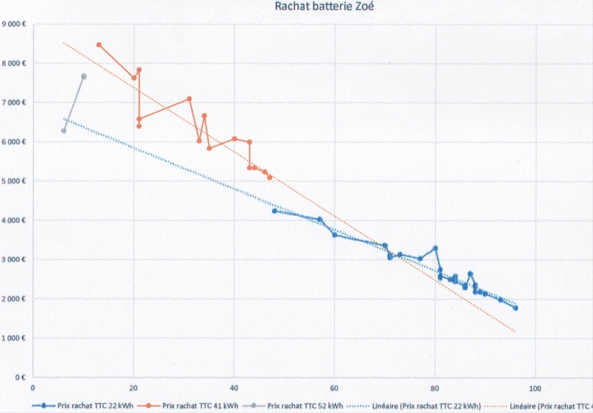 2) Tu payes dans ta mensualité la "dépréciation" de la batterie, en gros en 22 kWh c'est 50€/mois de ta mensualité qui sera déduite du prix de rachat de la batterie: Pour la batterie 41 : 8 100 - (60 * X) = Tarif TTC - X représente l'âge en mois de la batterie. 3) Concernant les capacités / réparations de batterie voici un extrait du contrat:
