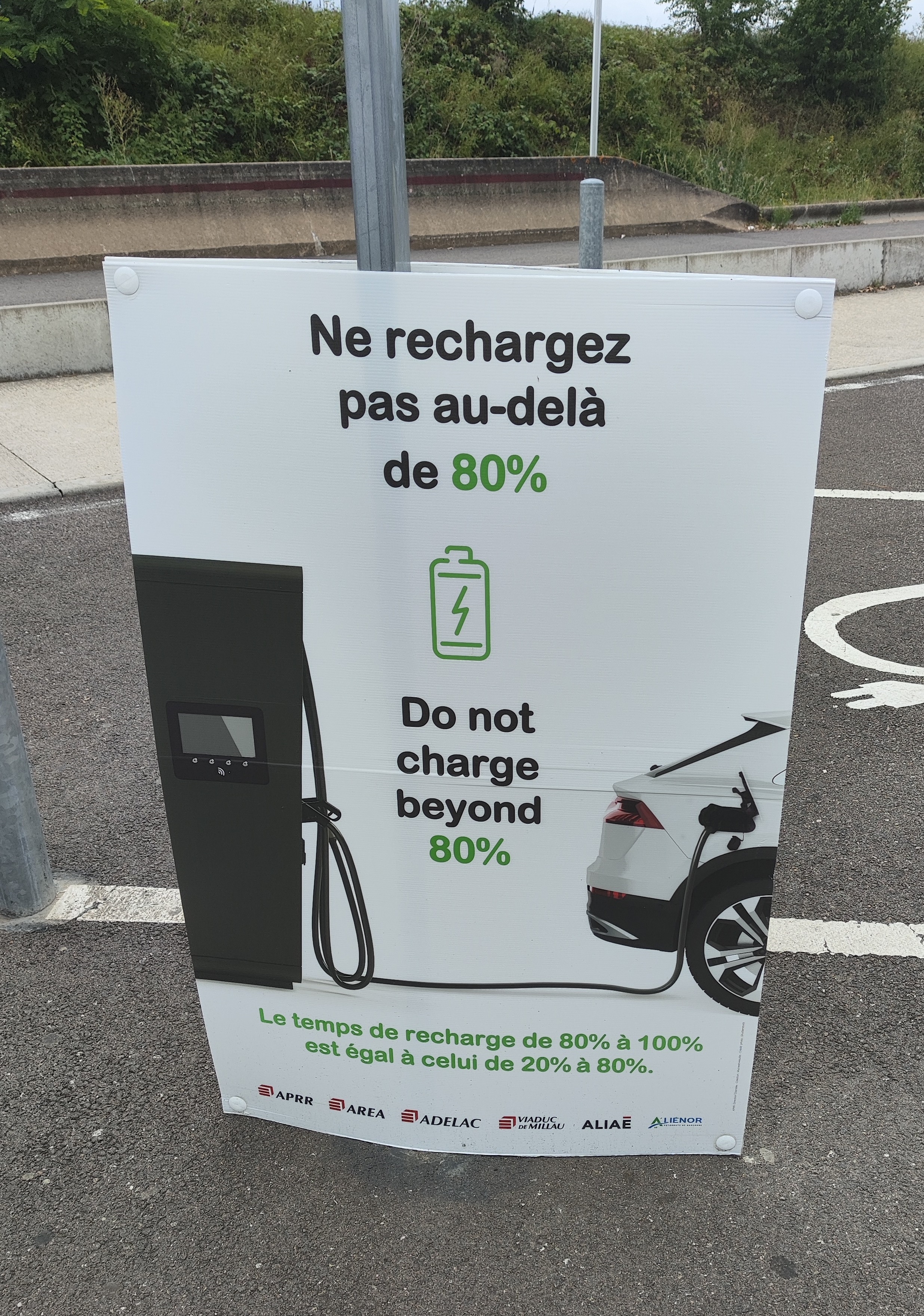 Ha ben lundi je n'ai rien vu moi Je pense qu'ils auraient pu ajouter, en plus du temps de charge 80-100, un truc du genre "soyez courtois, pensez aux autres usagers qui voudraient recharger, favorisez la rotation sur les bornes" |