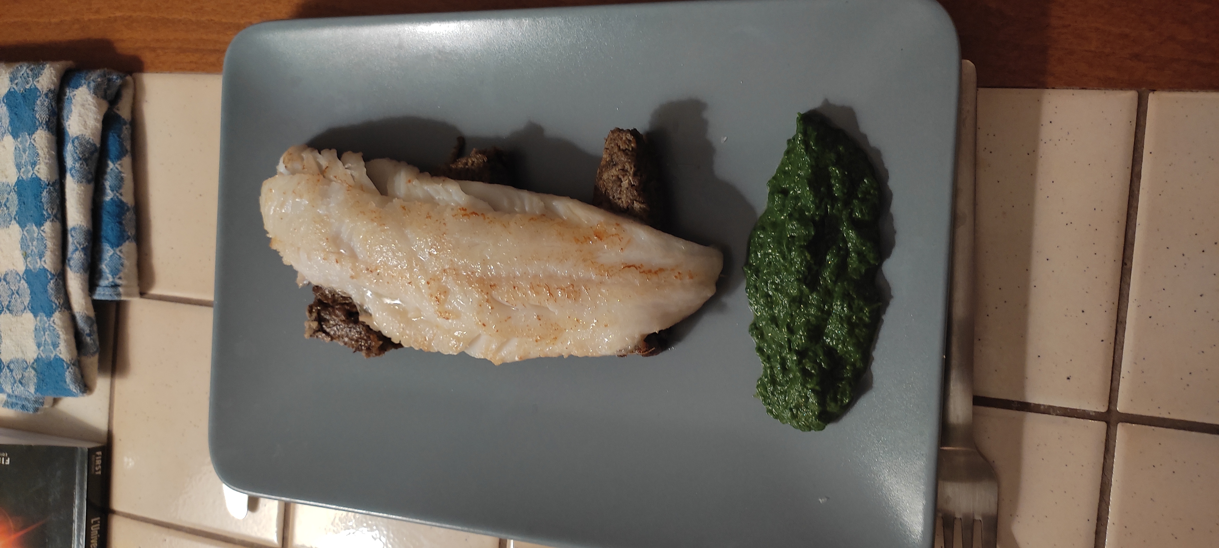 RaKaCHa | Filet de merlan de ligne, flan aux champignons et "jus" d'épinards (que j'ai préféré faire moins liquide comme on peut le voir). Je m'aperçois que c'est vraiment nul les assiettes rondes en fait. Le bouquin est très bien, c'est "Vive le.poisson !" des éditions "Trop Mad !". Message cité 1 fois Message édité par RaKaCHa le 31-01-2022 à 22:07:25 |